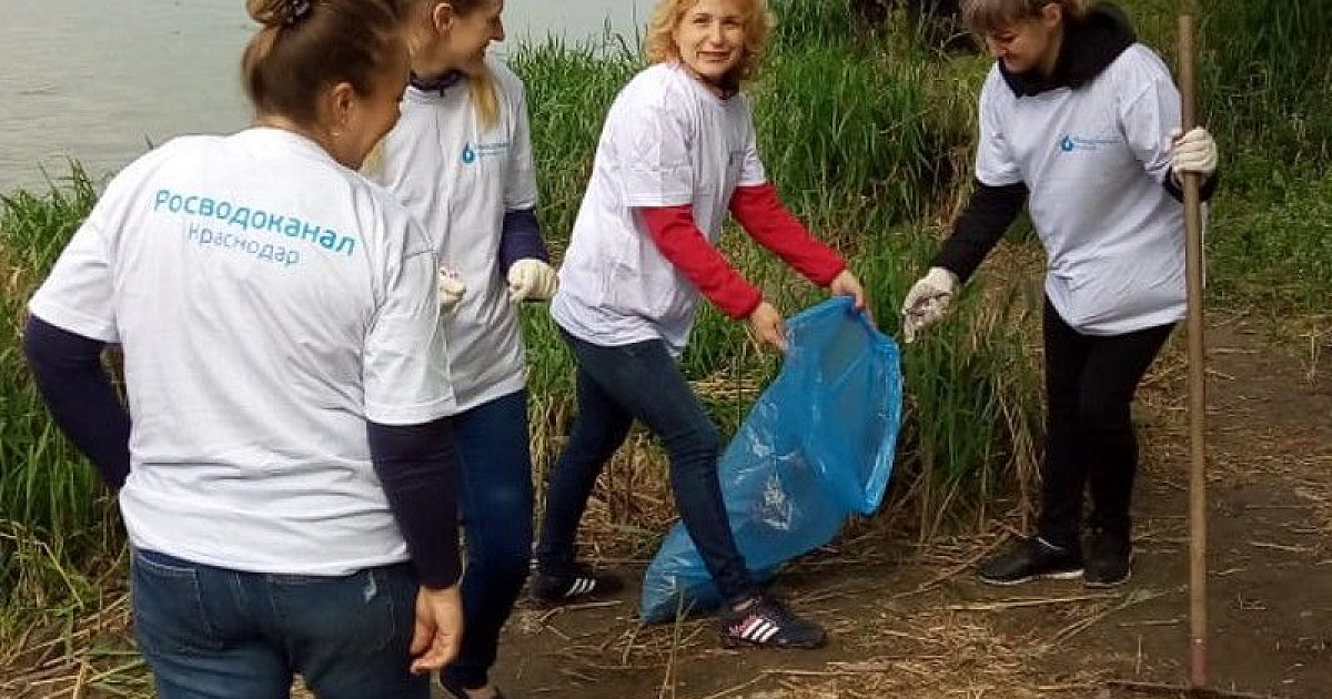 В рамках Общероссийской акции по уборке водоёмов и их берегов «Вода России», трудовой десант «Росводоканал Краснодар» (
