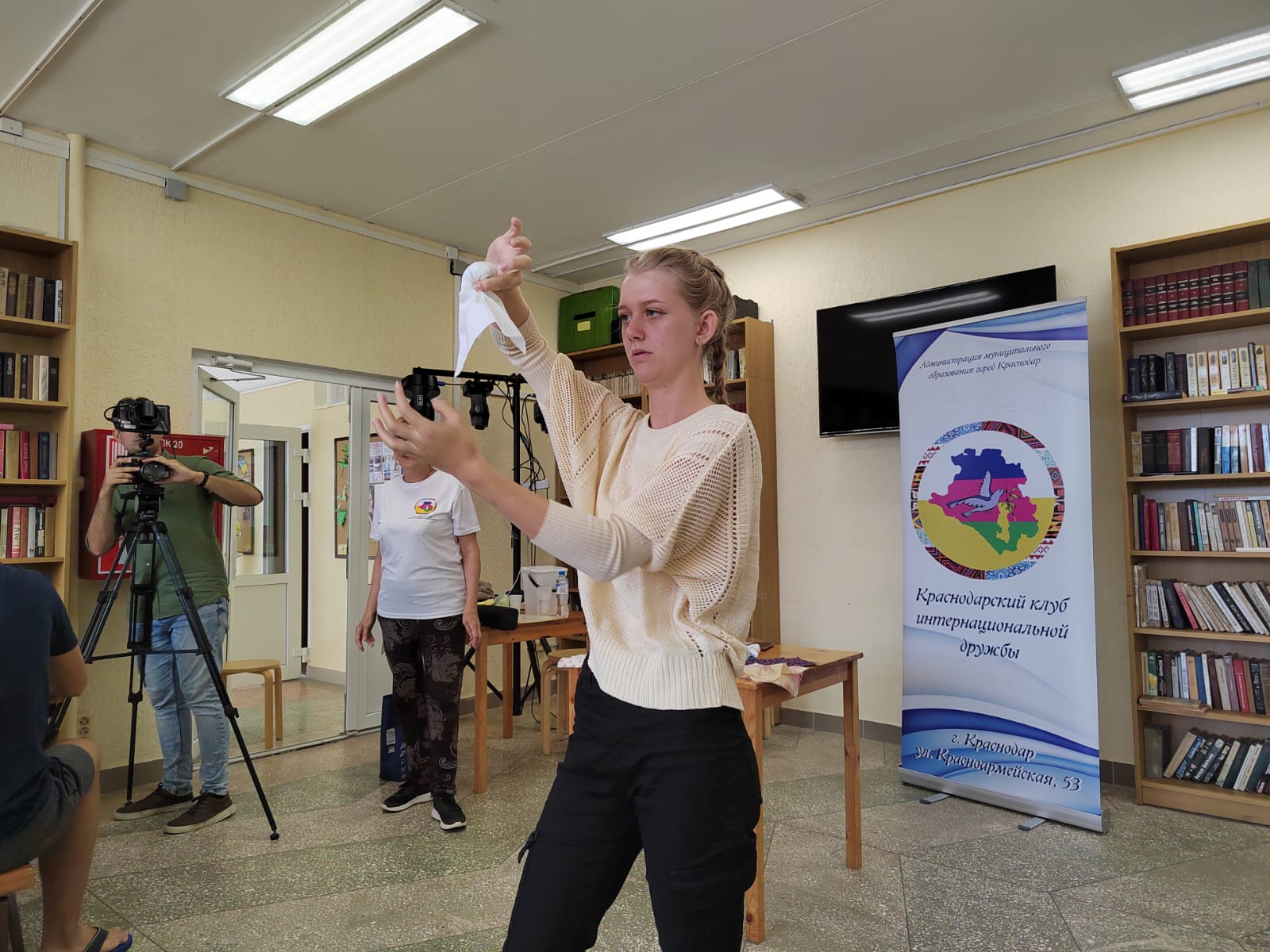 16 сентября 2022В рамках реализации подпрограммы «Гармонизация межнациональных отношений и профилактика терроризма и экстремизма» муниципальной программы муниципального образования город Краснодар «Развитие гражданского общества» Краснодарская краевая молодёжная общественная организация «Молодёжная лига развития национальных культур Кубани» и действующий вот уже более десяти лет на базе муниципального казённого учреждения муниципального образования город Краснодар «Общественно-информационный центр города Краснодара» Краснодарский молодёжный клуб интернациональной дружбы провели мероприятие, которое собрало более 30 молодых активистов разных национальностей (русские, армяне, татары, кабардинцы, греки, дагестанцы, студенты из ЛНР, Индии, Камеруна, Казахстана и Узбекистана) из учебных заведений Краснодара (КГУ, КГМУ, КГАУ, КГТУ, учебных заведений среднего профессионального образования).