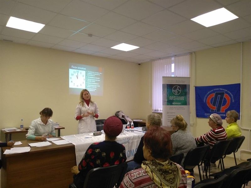 В ноябре 2018 года очередное занятие в «школе здоровья» прошло в общественной приемной Местного отделения Союза пенсионеров России Карасунского округа города Краснодара, где врачи-неврологи высшей категории Шадрина Елена Николаевна и кандидат медицинских наук Богданова Инна Сергеевна провели занятие, консультацию для членов организации.