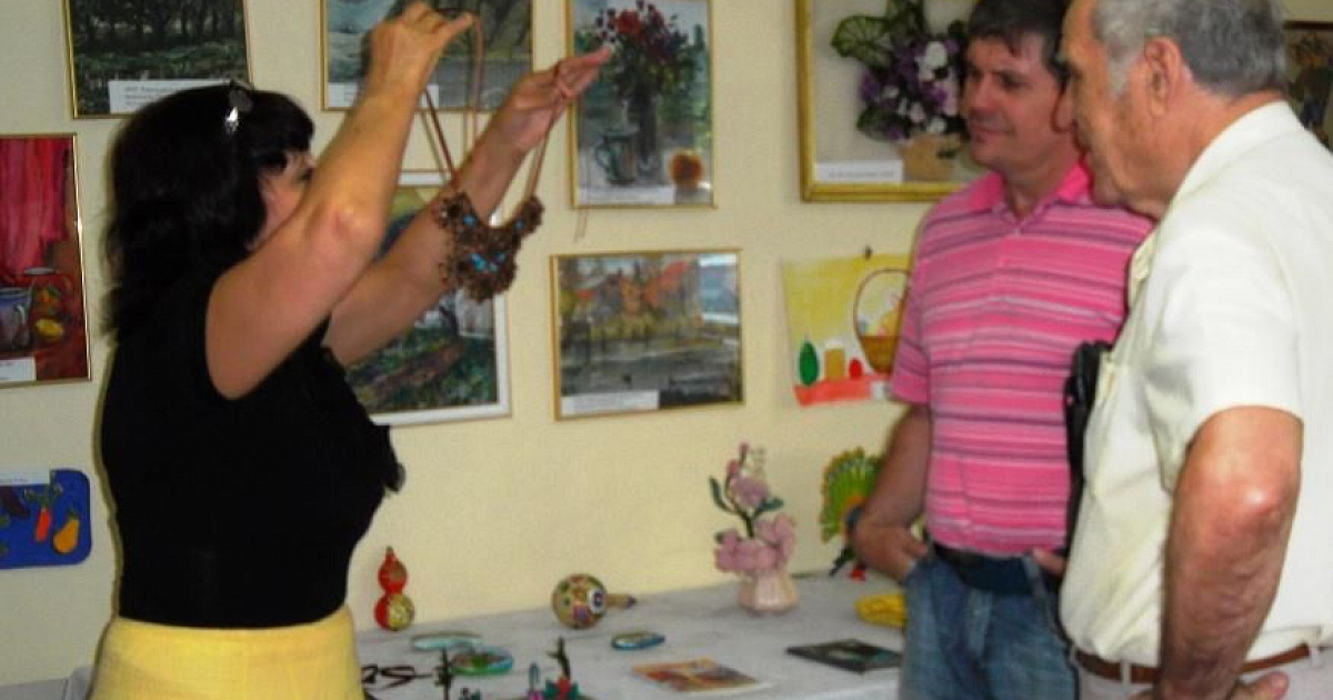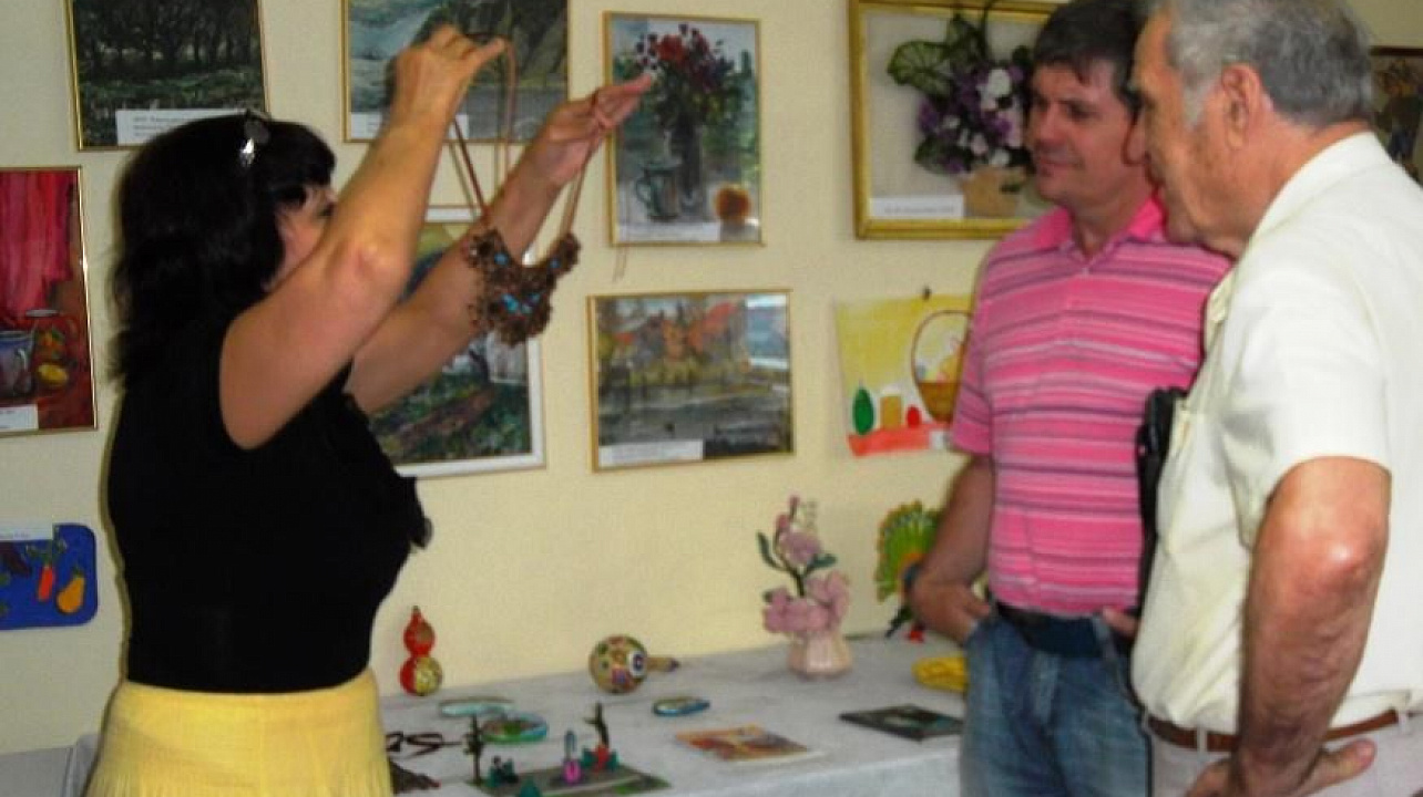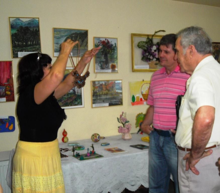 Изюминкой мероприятия стала выставка народного творчества, подготовленная по инициативе специалиста территориального центра Людмилы Беспоясной. На ней были представлены картины, выполненные акварелью, детские рисунки из папье-маше, бижутерия ручной работы, рисунки маслом на камнях, изделия из дерева, вышивка. Особый интерес у гостей вызвала замечательная экспозиция члена ветеранской организации Генриха Ивановича Кожана, которому принадлежат рисунки маслом на камнях и изделия из тыквы, а также тематическая беседа с членом организации инвалидов чернобыльцев Константином Агуловым.