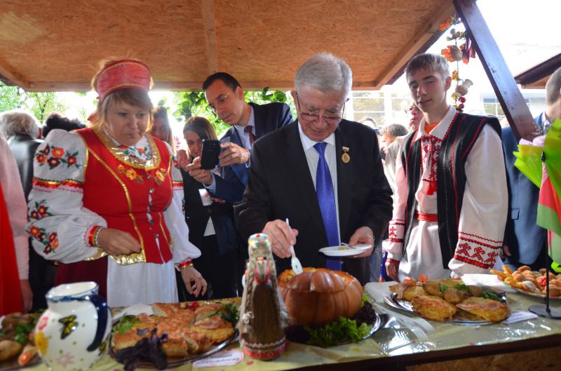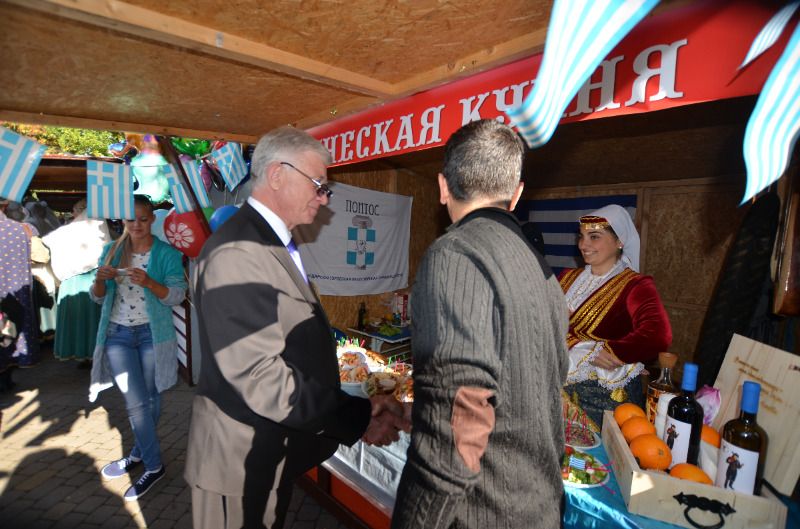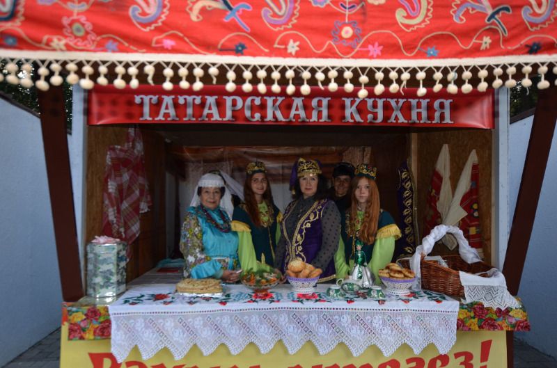 В это же время неподалёку от сцены гости праздника смогли продегустировать блюда национальных кухонь и ознакомиться с выставками предметов прикладного народного творчества: национальными костюмами, народными музыкальными инструментами, изделиями традиционных народных промыслов, утварью и старинными предметами быта. Национальные выставки представляли русскую, белорусскую, славянскую, адыгскую, корейскую, азербайджанскую, чеченскую, грузинскую, таджикскую, осетинскую, татарскую, польскую, армянскую, греческую и сербскую культуры.