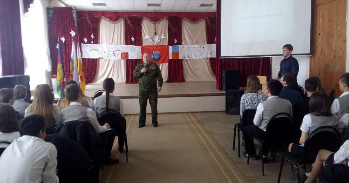 В середине февраля в МБОУ СОШ № 58 состоялась встреча старшекласснико с ветераном боевых действий Всероссийской организации «Боевое братство» Соловьевым Алексеем Валентиновичем, а также членами молодежного парламента Кузько Алексеем и Шиповской Анной.