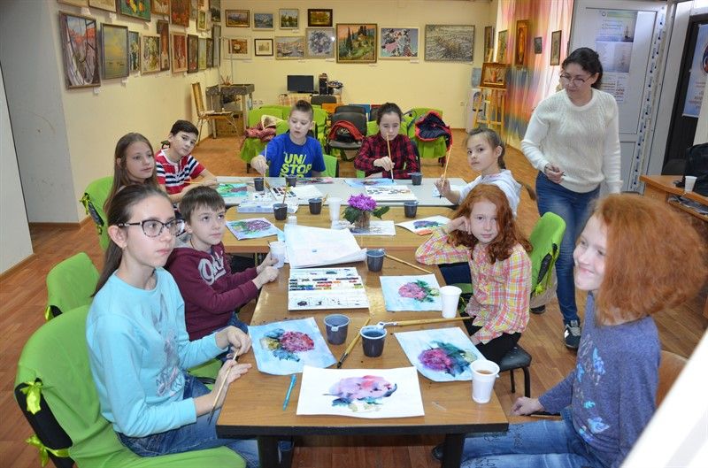С художницей пришел на занятия ее сын - будущий первоклассник, которому изучение ИЗО предстоит в рамках школьной программе. На мастер-классы в центр приходят дети из разных социальных групп, желающие пообщаться с настоящими художниками и глубже изучить ту или иную технику. Занятия проводятся в небольших группах, что позволяет добиться лучших результатов: ребятам хорошо видно все, что делает мастер, а художнику легче помочь и подсказать каждому, уделить внимание тонкостям техники и нюансам.