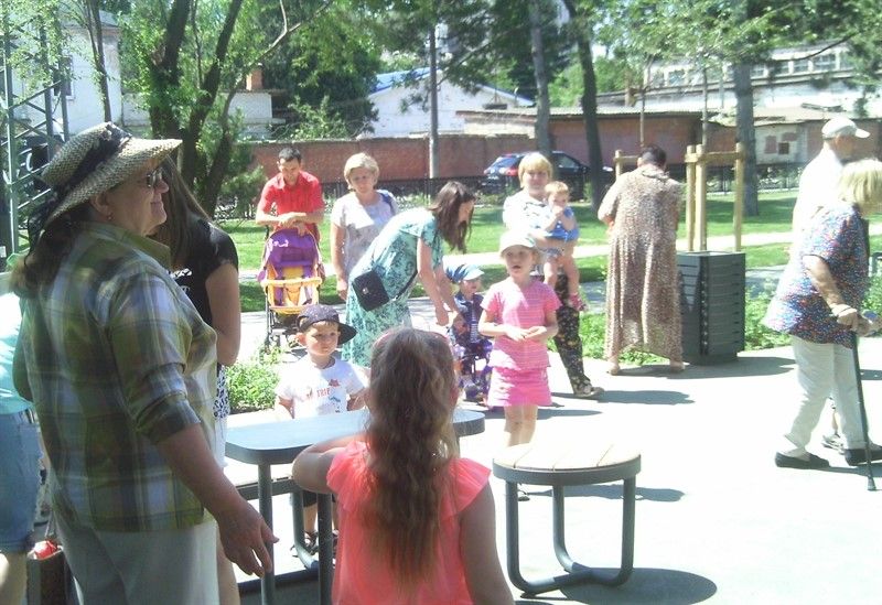 Для деток разных возрастов были проведены соревнования на лучший рисунок фломастерами, детки постарше прыгали на скакалках, играли в различные игры с мячами, рисовали мелками на асфальте, самые маленькие раскрашивали заранее распечатанные картинки. Всем участникам праздника были вручены подарки и призы: детские игрушки, мячи, скакалки, фломастеры, альбомы для раскраски и рисования, конфеты, печенье, мороженое. Активом общественной организации была организована выставка самодельных кукол, зверюшек и других поделок, изготовленных Ветеранами совместно с их внуками.