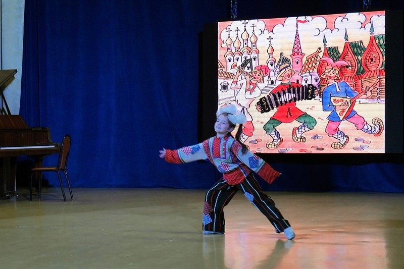 Солисты танцевальной студии танца «Весна» под руководством А. А. Телятникова и О.Г. Саргаевой из детской школы искусств им. С.В. Рахманинова порадовали зрителей великолепными танцами. Выступления артистов сопровождались яркими, красочными иллюстрациями на большом экране.