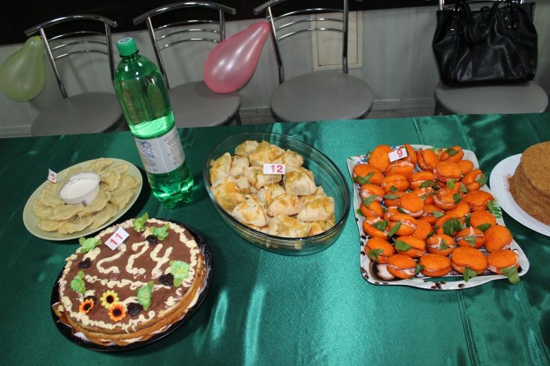 Призовые места заняли (номинация «пироги»): превое место Горниченко Т.И, второе место – Дмитриева А.Н., третье место – Каминир Т.Д. приз зрительских симпатий получила Фокина О.М. В номинации пирожки награды получили: первое место - Шепелева С.С, второе – Горбачева Л.П., третье – Былинкина А.Н., поощрительный приз – Турк А.В. Победители получили кухонную утварь и наборы конфет.