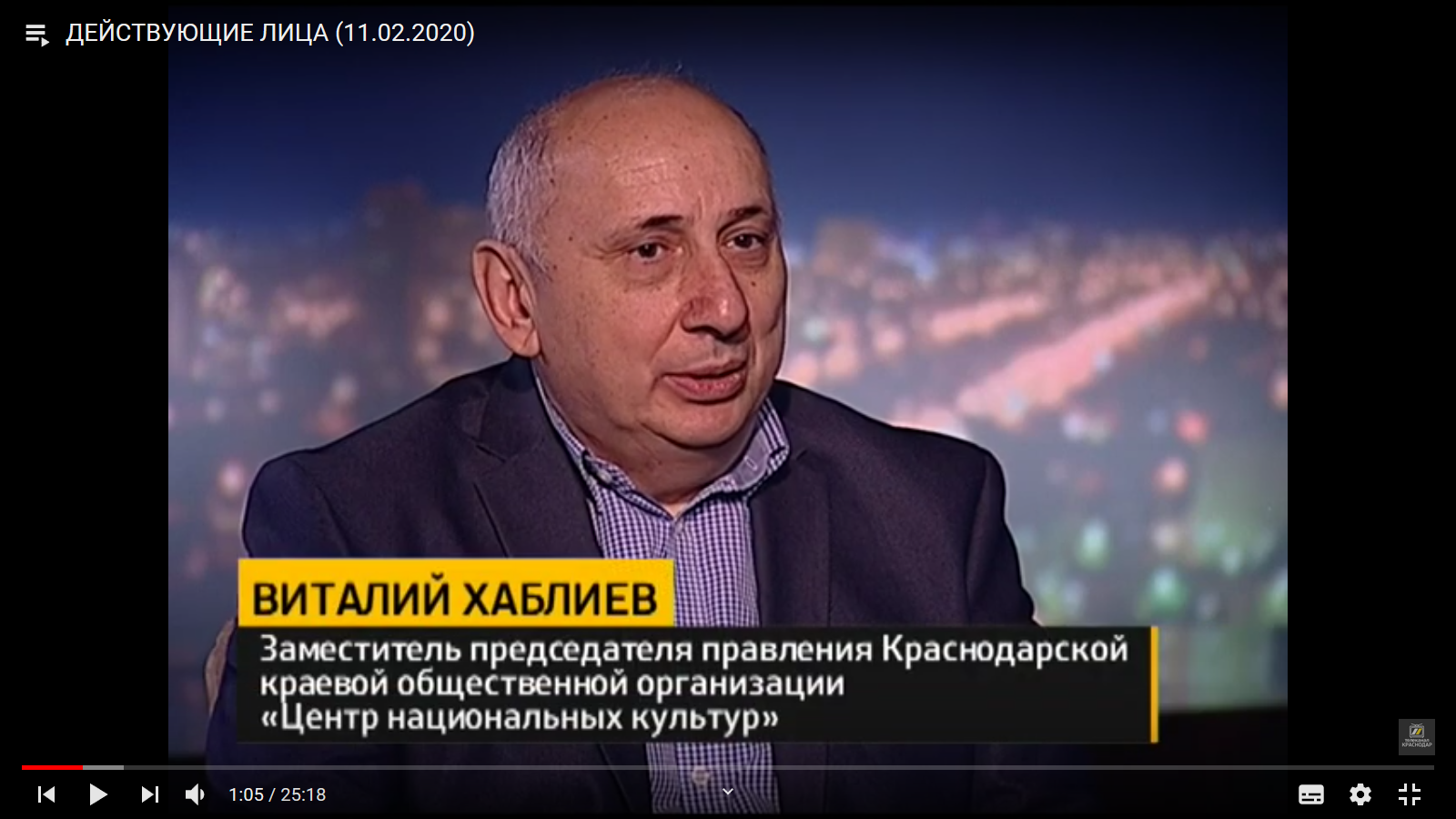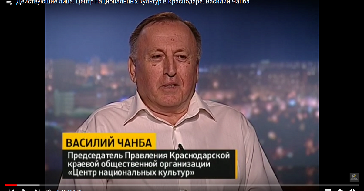 5 августа 2020На минувшей неделе в эфир муниципального телеканала «Краснодар» вышла очередная передача «Действующие лица». Гостем программы стал председатель Краснодарской краевой общественной организации «Центр национальных культур» Василий Чаманович Чанба. В течение 25 минут ведущая и гость программы обсуждали актуальные вопросы, связанные с сохранением национальных культур, укреплением межнационального мира и согласия в столице Кубани.