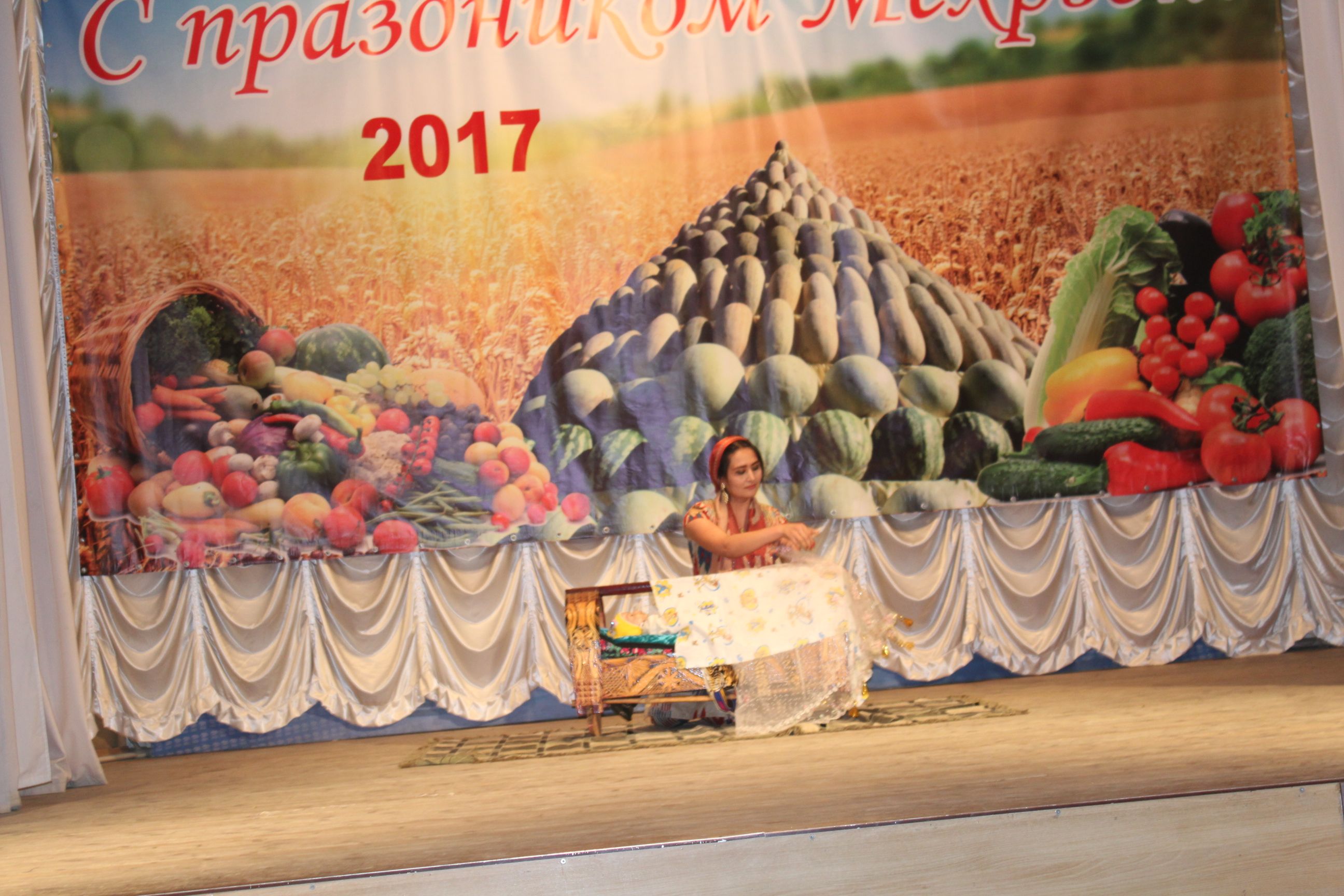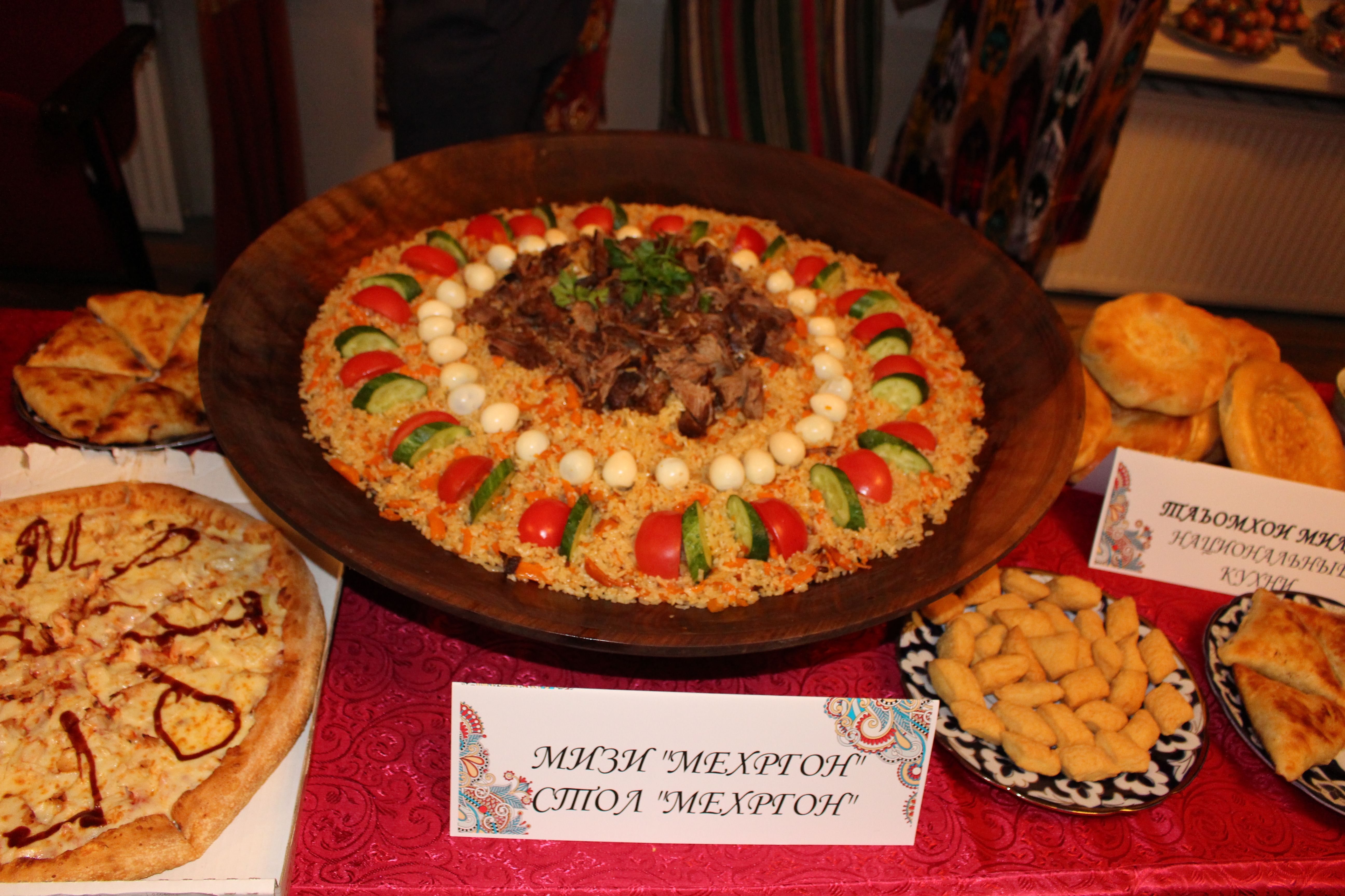 Ну и какой же праздник урожая без даров природы? Надо сказать, что организаторы постарались на совесть: праздничные столы играли яркими красками разнообразных овощей и фруктов. И, конечно, не обошлось без традиционного и любимого всеми плова, который был представлен на празднике урожая в десяти разновидностях.