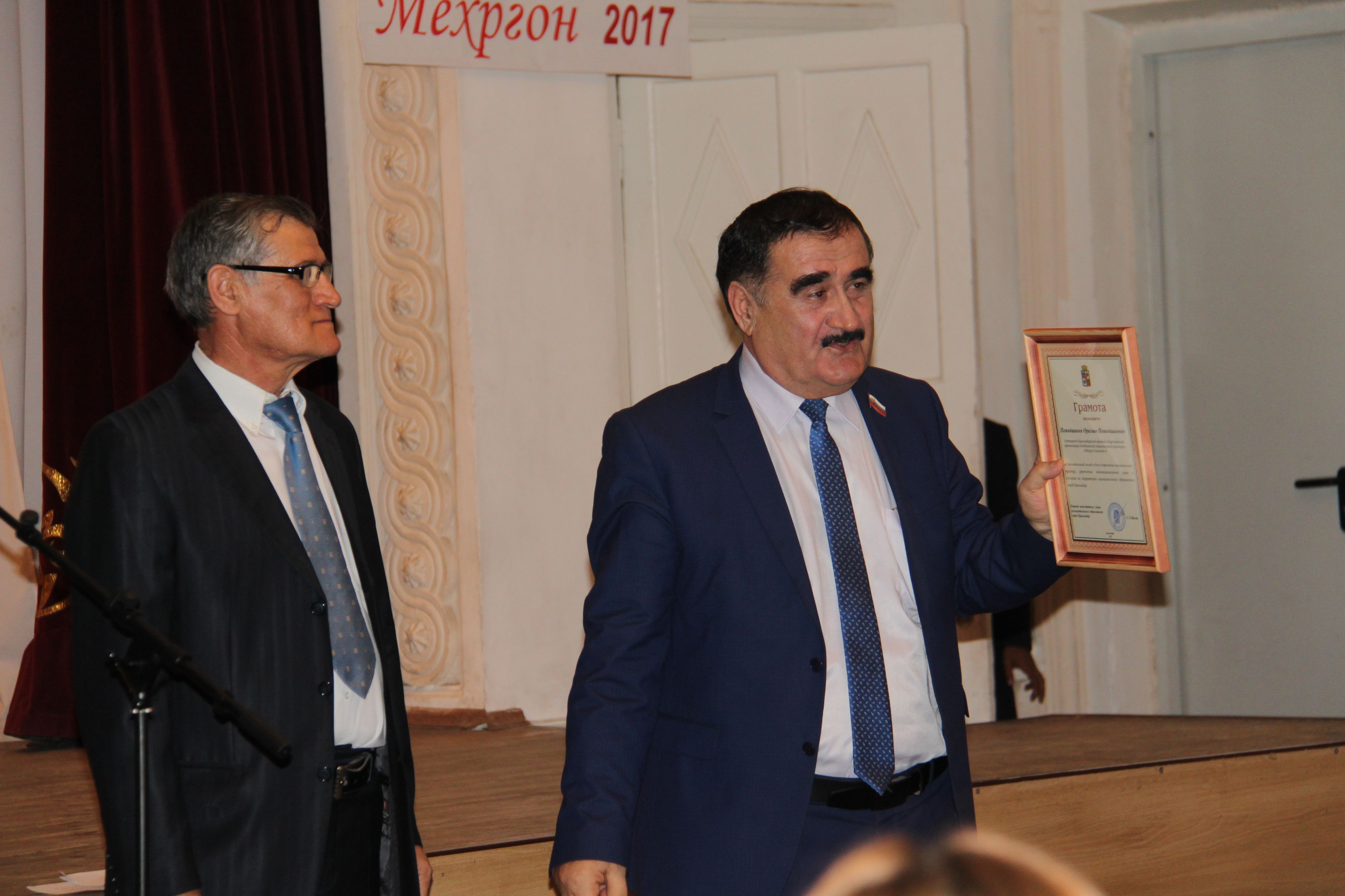 Поздравить живущих в Краснодаре таджиков, а их собралось около трёхсот человек, пришли начальник отдела по межнациональным отношениям и делам религий департамента по связям с общественностью, взаимодействию с правоохранительными органами, делам казачества и военнослужащих администрации муниципального образования город Краснодар Андрей Владимирович Березин и Председатель Правления Краснодарской краевой общественной организации «Центр национальных культур» Василий Чаманович Чанба. Они тепло поприветствовали собравшихся, а девяти наиболее отличившимся активистам Краснодарской краевой общественной организации таджикской национальной культуры «Мехри Сомониён» Андрей Березин вручил грамоты за значительный вклад в дело сохранения национальных культур, укрепления межнационального мира и согласия на территории муниципального образования город Краснодар.