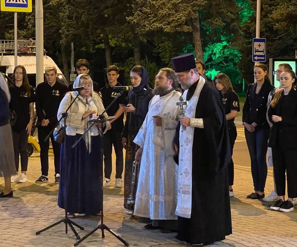 Вечером у поклонного креста вблизи Войскового собора святого благоверного князя Александра Невского молодые активисты почтили память погибших в террористических актах, возложив цветы и лампады. Богослужение во время проведения акции возглавил настоятель краснодарского храма Рождества Христова протоиерей Александр Игнатов.