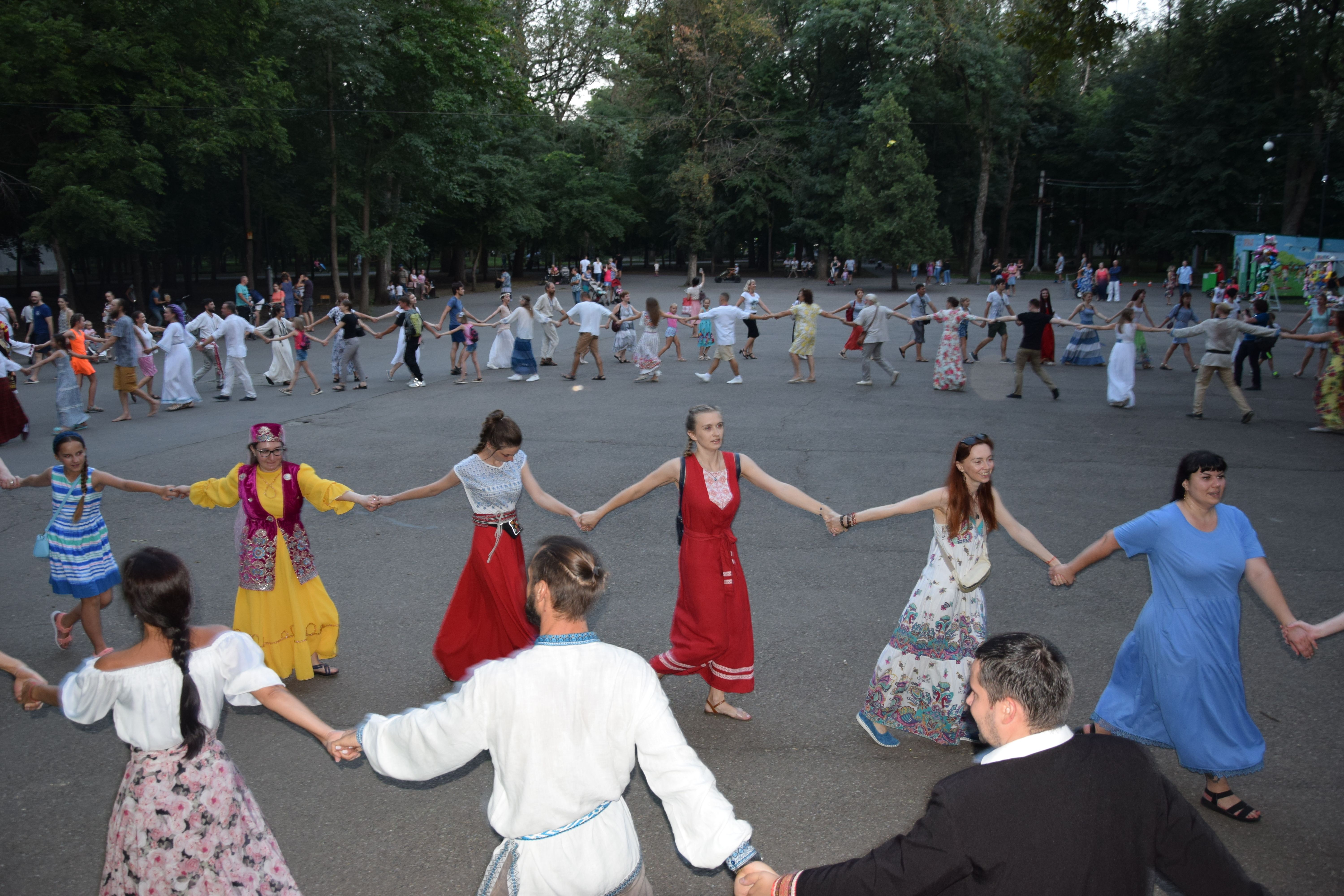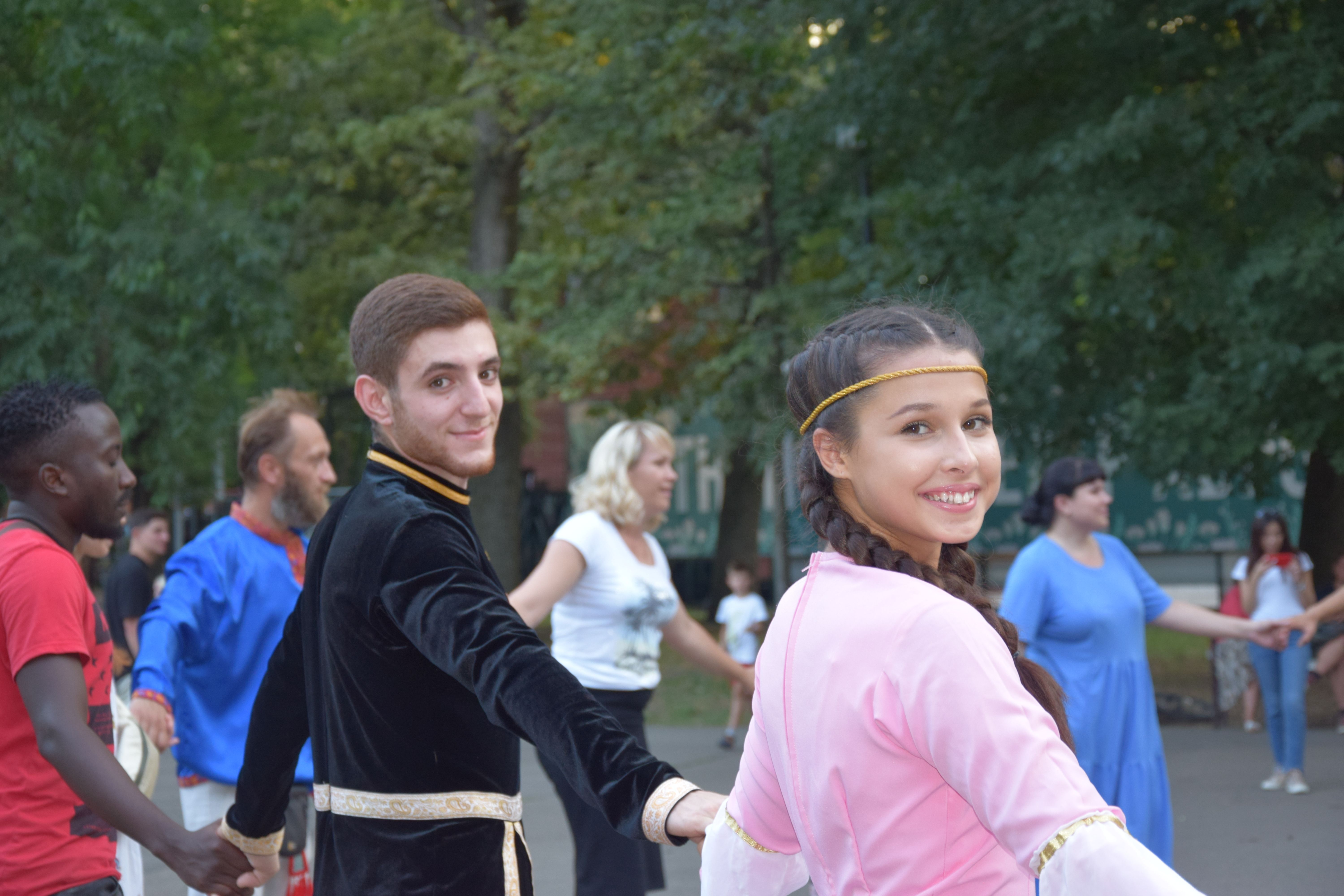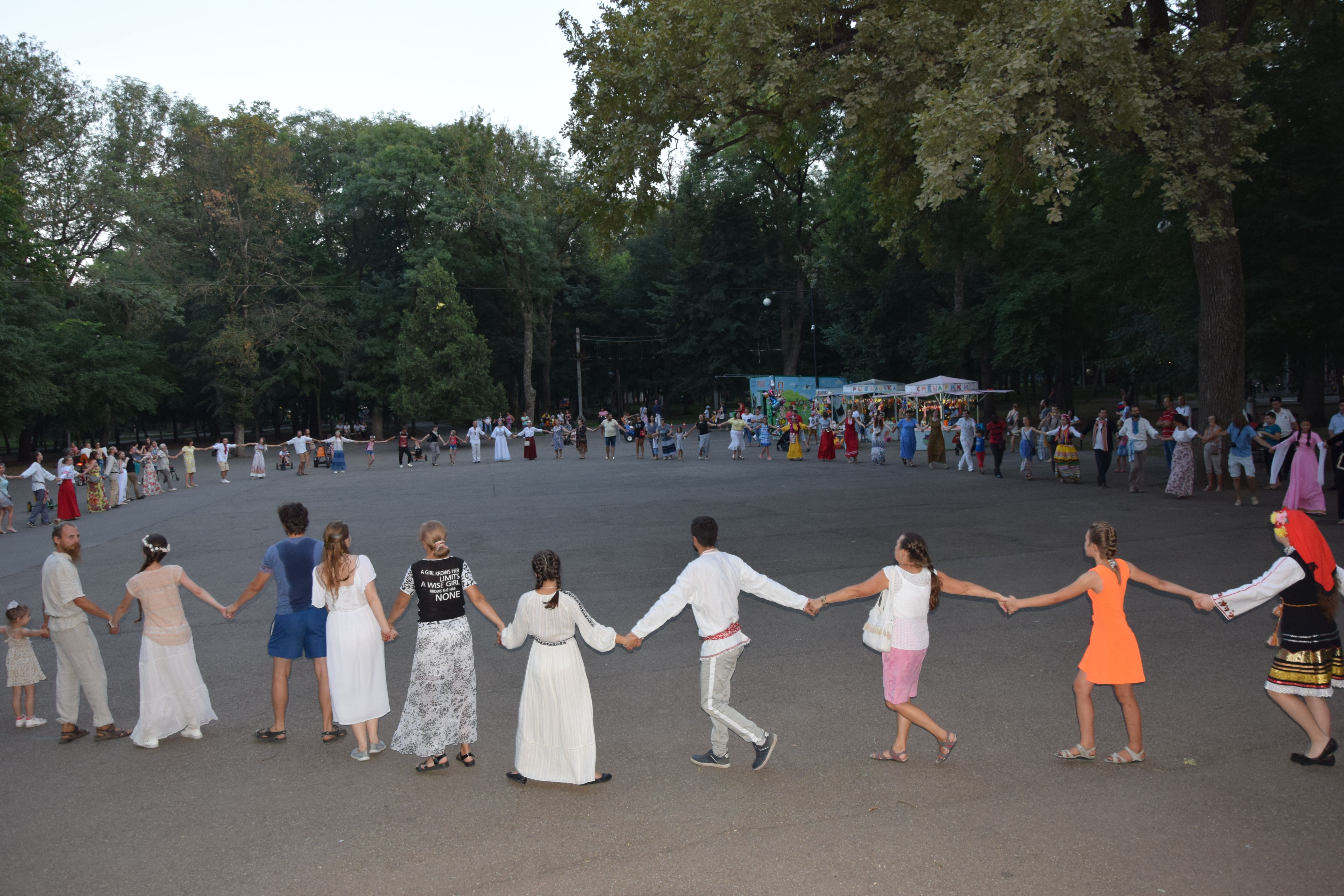 Объединённые русскими традициями и культурой, участники акции закружились на площадке возле центральной сцены. По замыслу организаторов, именно таким танцем дружбы и согласия можно объединить людей разных национальностей, вероисповеданий, мировоззрений, культур.