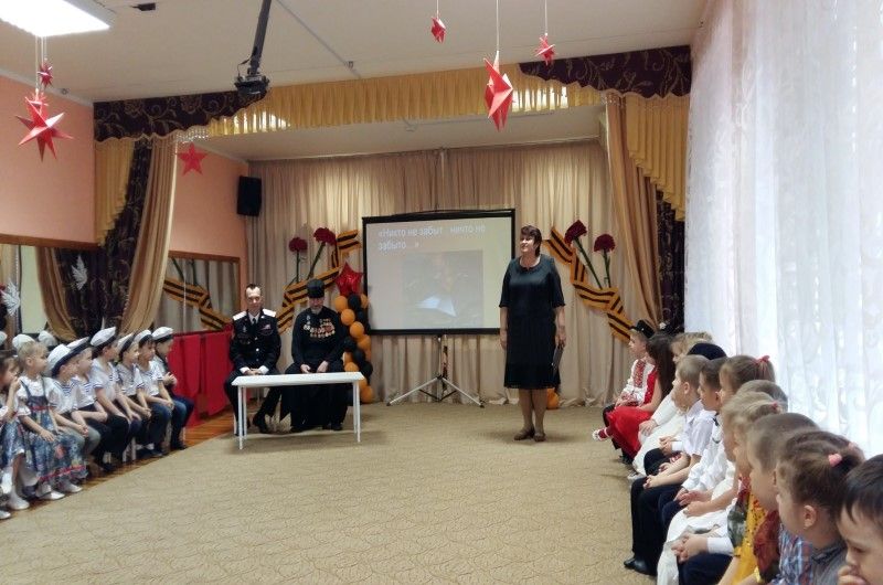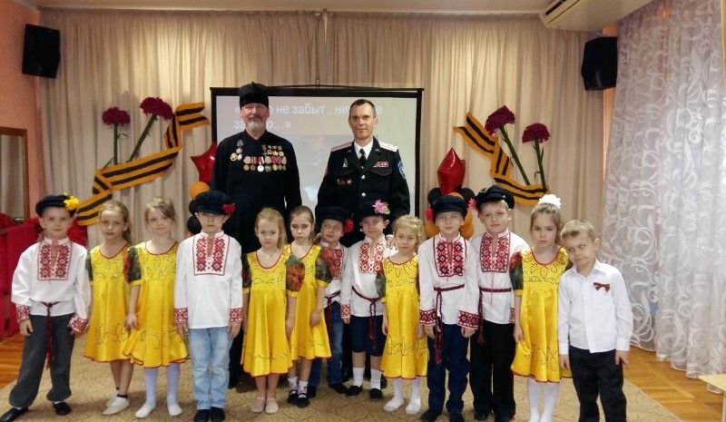 В феврале 2016 года состоялись встречи-беседы председателя Краснодарского городского отделения «Российский Союз ветеранов Афганистана», Заместителем атамана Екатеринодарского районного казачьего общества Кирсановым Виктором Александровичем и ветерана боевых действий священно-служителем Свято-Георгиевского Храма х. Ленина Отца Георгия с воспитанниками детского сада. Во время встречи ветераны поделились своими воспоминаниями, рассказали об особенностях военной службы, умении встречать трудности с мужеством, пожелали ребятам вырасти достойным поколением, которое в будущем сможет защитить наше Отечество. Многое рассказали гости о самом Афганистане, культуре, традициях и обычаях. Ветераны вместе с ребятами спели песни военных лет, показали видеофильм из солдатской жизни, ответили на вопросы воспитанников детского сада. Ребята же в ответ читали стихотворения, пели песни и танцевали. Пожелали ветеранам крепкого здоровья, дружно сказали огромное спасибо за то, что нынешнему подрастающему поколению есть на кого равняться и с кого брать пример.