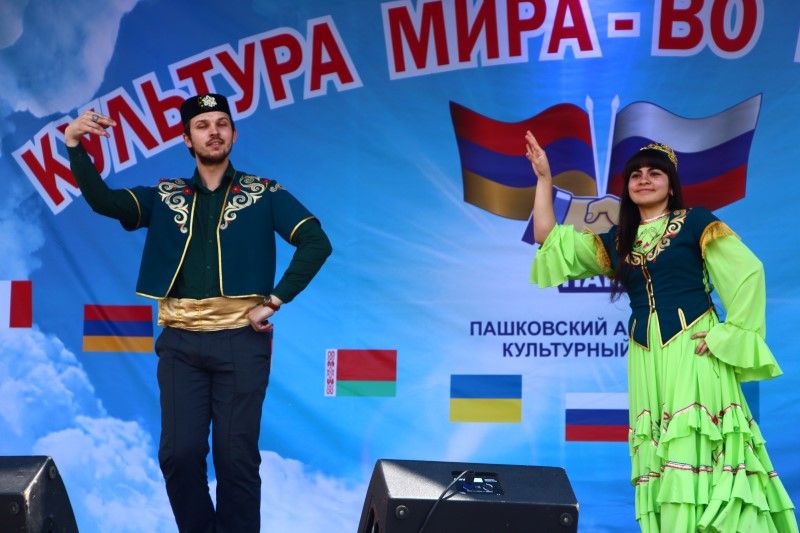 В завершении концертной программы фестиваля преподаватель эстрадного вокала Пашковского армянского культурного центра Артур Бабаян и вместе с ним все участники праздника исполнили бессмертный хит – песню композитора Давида Тухманова и поэта Владимира Харитонова «День Победы».