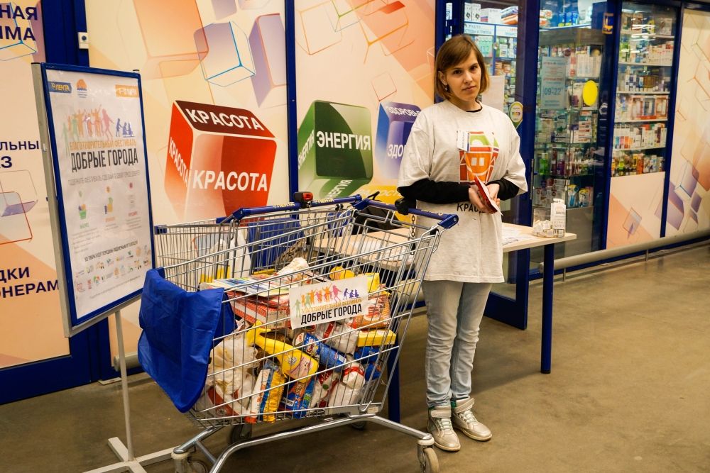 11 марта 2019Фестиваль «Добрые города» проходил с 4 по 10 марта во всех гипермаркетах «Лента». Жители города могли на местах приобрести товары первой необходимости, игрушки, книги, предметы гигиены, продукты и сразу передать их нуждающимся. В числе помощников при проведении акции были и молодые люди с ментальными нарушениями.