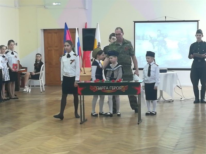 В день проведения акции исполнительный директор Краснодарского регионального отделения РВИО, председатель совета Боевого Братства Кубани, член общественной палаты г. Краснодара Сергей Третьяков передал директору школы знамя РВИО и комплект фильмов теле проекта «Аллея Российской Славы», посвященный участникам локальных войн и вооруженных конфликтов, Героях Советского Союза и РФ.