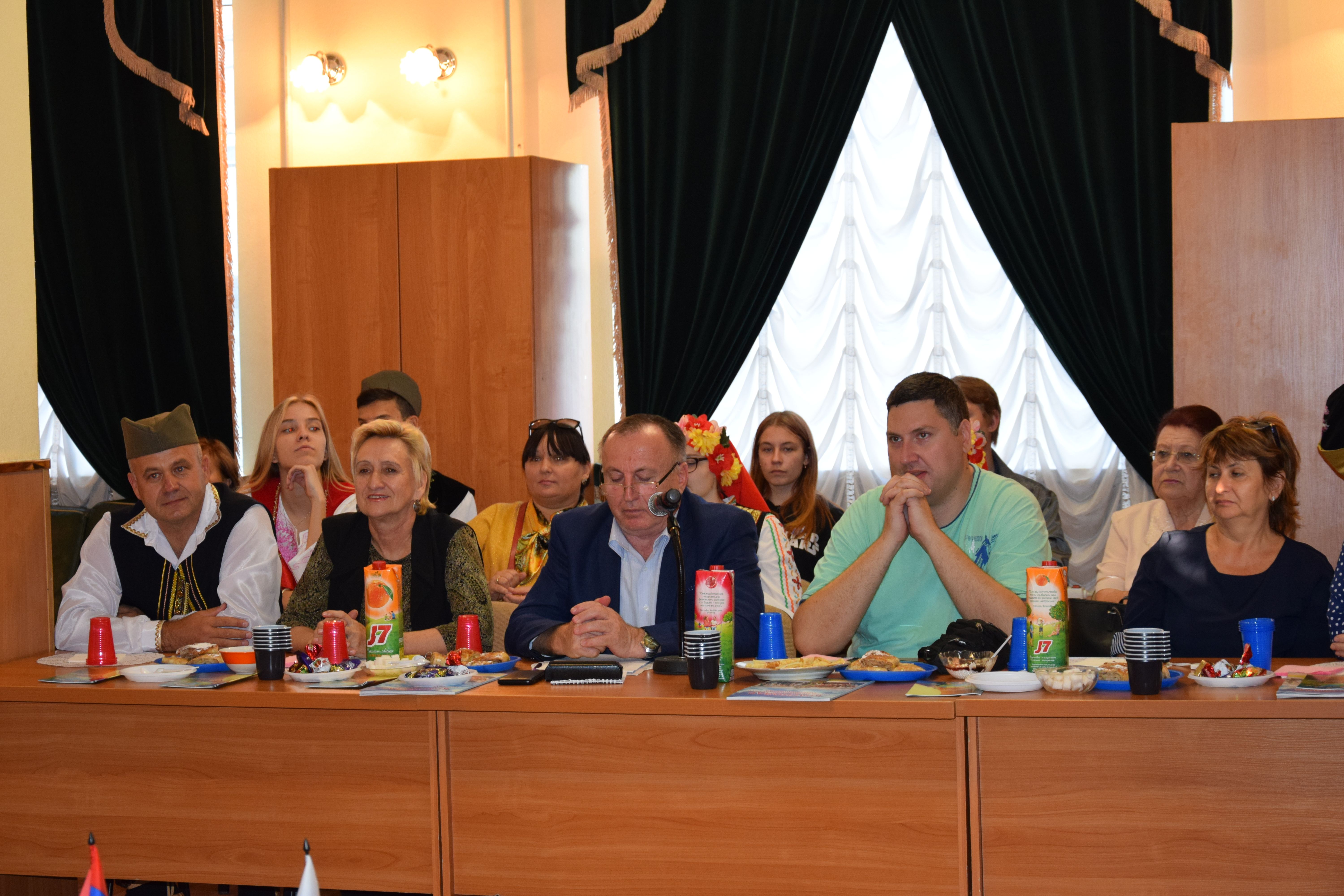 С приветственным словом к собравшимся обратился Председатель Правления Краснодарской краевой общественной организации «Центр национальных культур» Василий Чанба. Он радушно поприветствовал иностранных гостей, поздравил всех участников мероприятия со значимой датой, рассказал о деятельности, которую Центр национальных культур ведёт в сфере сохранения культуры и традиций народов, укрепления межнационального согласия. Заместитель председателя Союза общественных объединений Краснодарского края «Союз славян Кубани» Наталья Хруцкая провела экскурс в историю российско-сербских отношений, подчеркнув особую близость русского и сербского народов по духу и вере. От лица сербской общины выступил заместитель председателя Краснодарской региональной общественной организации «Югославское общество «Юговичи» Драган Евремович, который рассказал о деятельности этой общественной организации. Также тепло поприветствовали гостей председатель Краснодарской краевой общественной организации «Общество русской культуры» Татьяна Брускова, заместитель председателя Краснодарской краевой общественной организации Болгарская община «Шипка» Мария Грудина, председатель Краснодарской краевой молодёжной общественной организации «Молодёжная лига развития национальных культур Кубани» Наталья Назаренко.