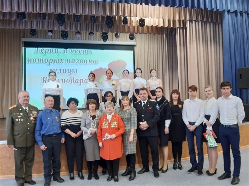 Учащиеся школы рассказали о героях России, в честь которых названы улицы Краснодара, вдовы героев поделились воспоминаниями. Во все времена все народы защищали свою страну, поэтому подрастающему поколению нужно знать имена Героев. Общение молодежи и гостей прошло в теплой атмосфере, выступления получились информативными и значимыми.