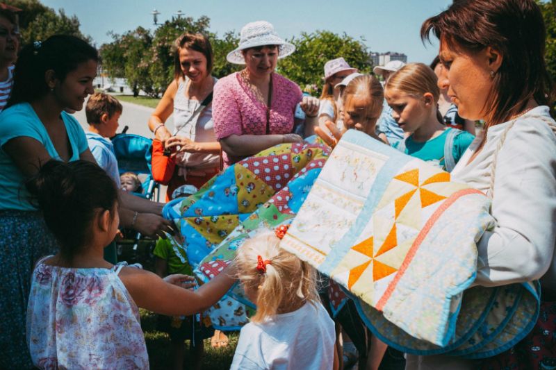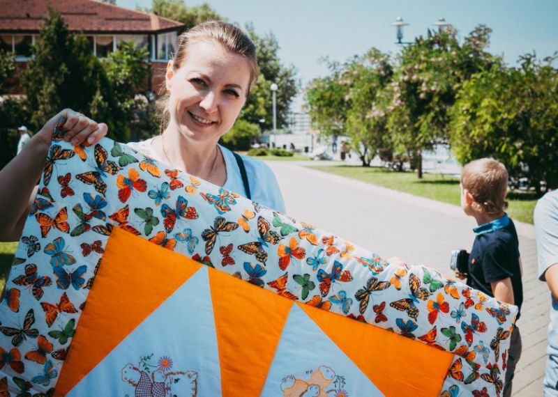 Приятным сюрпризом для всех участников водной прогулки оказалось вручение одеял ручной работы от мастерицы Елены Паньковой. Она сумела объединить рукодельниц со всей России: Новосибирск, Калининград, Москва, были и даже участники из Италии. Как много добра и пожелания здоровья несут эти чудесные вещи! Мастерицы разных возрастов, от девяти до семидесяти семи лет, сшили эти одеяла специально для особенных деток. Тёплое чудо досталось каждому малышу!