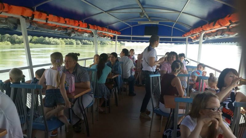 Шестого июля 2016 г. "Край Милосердия" порадовал своих подопечных прогулкой на теплоходе "Дон". Кубанское речное пароходство, традиционно предлагающее жителям нашего города водные прогулки по реке Кубань, присоединилось к участию в программе «Радость детства», в рамках которой дети регулярно посещают развлекательные мероприятии и экскурсии. Удобно устроившись на открытой палубе теплохода, все с нетерпением ждали начала прогулки. И вот прозвучала команда капитана "Отдать швартовые!", теплоход бесшумно отчалил от пристани. Дети разных возрастов со своими семьями насладились интересными пейзажами. В прогулке по реке Кубань есть свой особый колорит: с борта открывается изумительный вид на город.