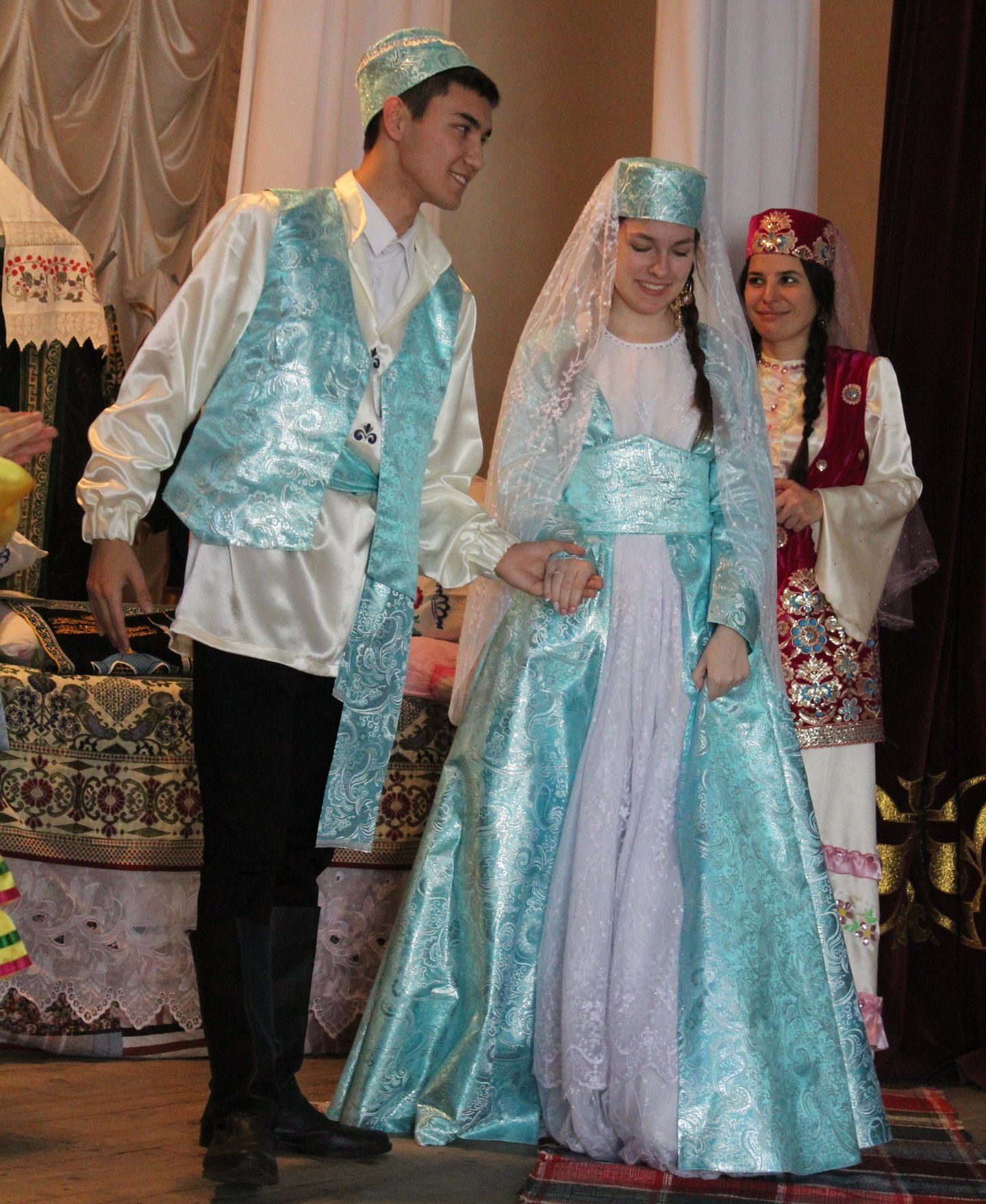 Кульминацией действа стал непосредственно сам сложный свадебный обряд. Одним из его самых ярких моментов явилась встреча молодожёнов матерью жениха с традиционными мёдом и маслом: при этом свекровь тут же устроила новоиспеченной невестке проверку, например, на умение нести воду в вёдрах на коромысле, знание татарских танцев и т.д.