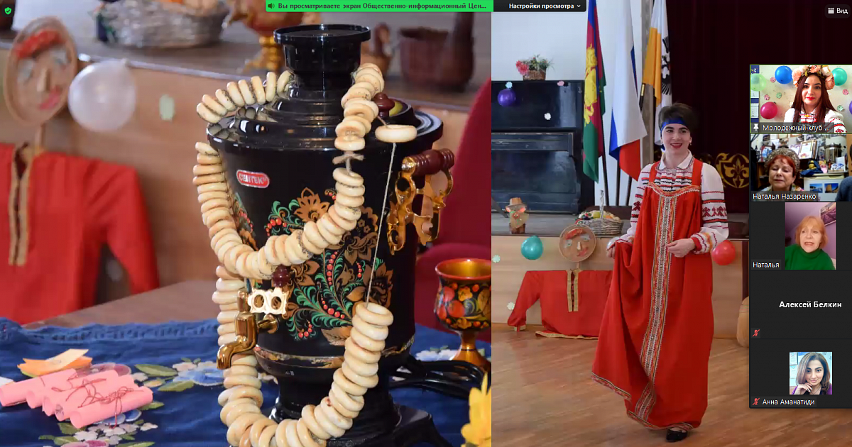 По окончании масленичной недели активисты Краснодарского молодёжного клуба интернациональной дружбы и молодёжного клуба «Оберег» провели онлайн-встречу, посвящённую празднованию Масленицы и приходу Весны. В рамках встречи жителей и гостей Краснодара тепло поприветствовали председатель Краснодарской краевой общественной организации «Общество русской культуры» Татьяна Брускова, председатель Краснодарской региональной общественной организации «Польский национально-культурный центр «Единство» Александр Селицкий и заместитель председателя Союза общественных объединений Краснодарского края «Союз славян Кубани» Наталья Хруцкая. В ходе онлайн-встречи представители национально-культурных общественных организаций, активисты молодёжных клубов и студенты образовательных организаций высшего и среднего профессионального образования, расположенных на территории Краснодара, посмотрели увлекательные видеоролики и презентации, вспомнили славянские народные песни и частушки, обсудили популярные блюда и угощения русской кухни, прочитали пословицы на разных языках и поучаствовали в увлекательной викторине. Гости мероприятия узнали много нового и интересного об истории праздника, древних славянских традициях и обычаях. Завершилось мероприятие творческим подарком от ансамбля народной песни «Заряночка».