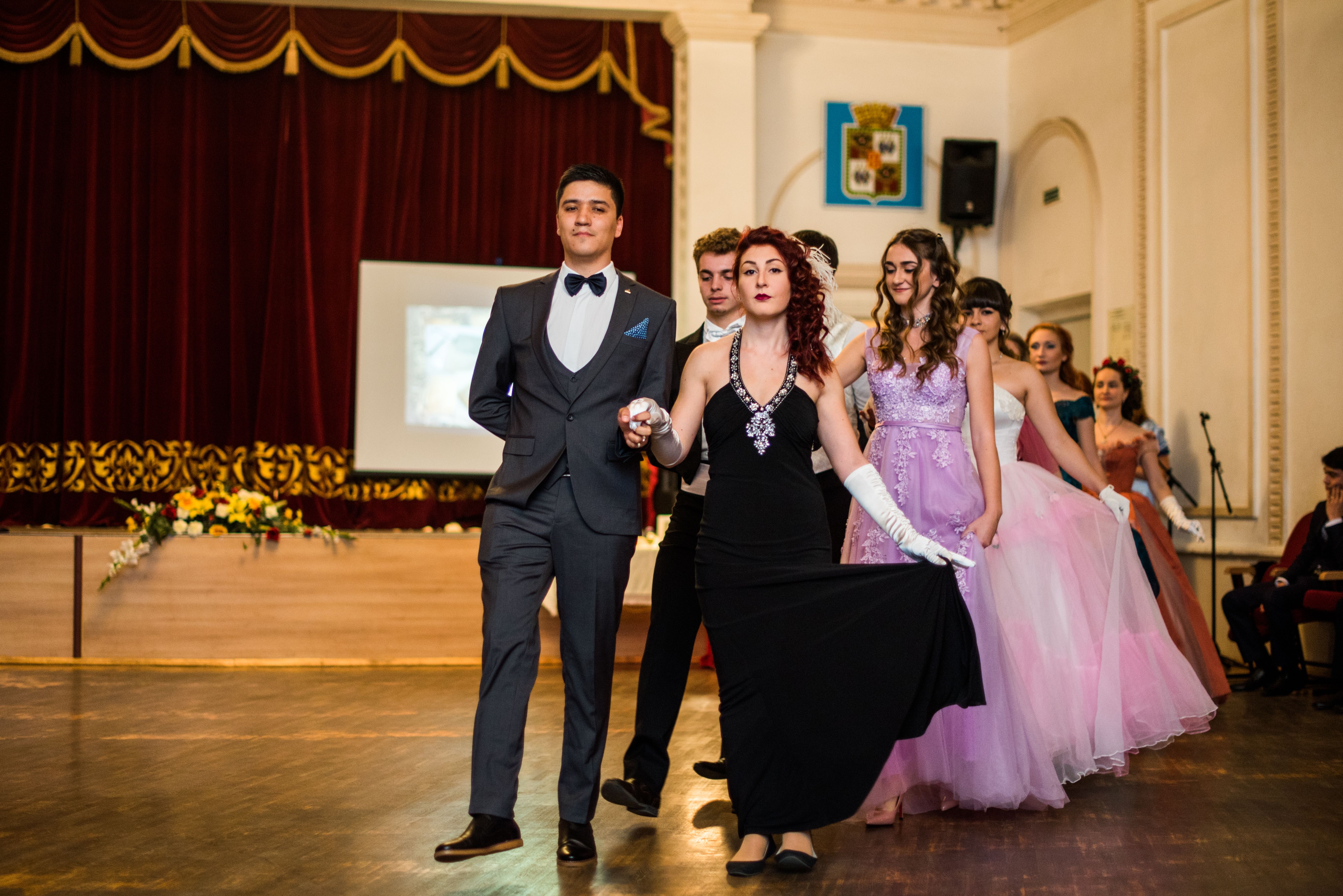 На три часа уютный актовый зал муниципального учреждения превратился в торжественную бальную залу. Атмосфера минувших веков, конечно же, была подчёркнута и в одежде: молодые люди во фраках и строгих костюмах, девушки – в соответствующих бальному этикету длинных платьях.