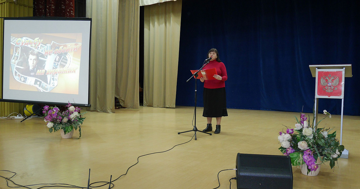 В концертном зале ДК ВОС собрались поклонники творчества Владимира Высоцкого — актёра, автора и исполнителя песен. Ведущие познакомили читателей с многогранным творчеством народного барда. На мероприятии прозвучали его песни «Парус», «Гимнастика», «Песня о земле», «Баллада о любви», в исполнении Солистов ДК ВОС, ДК №1 Центрального округа: Екатерины Смык, Елены Поддубной, Галины Федотовой. Читательница библиотеки Марина Балаклиец декалмировала его стихи: «Баллада о времени», «В темноте», «Зарыты в нашу память на века» и многие другие.