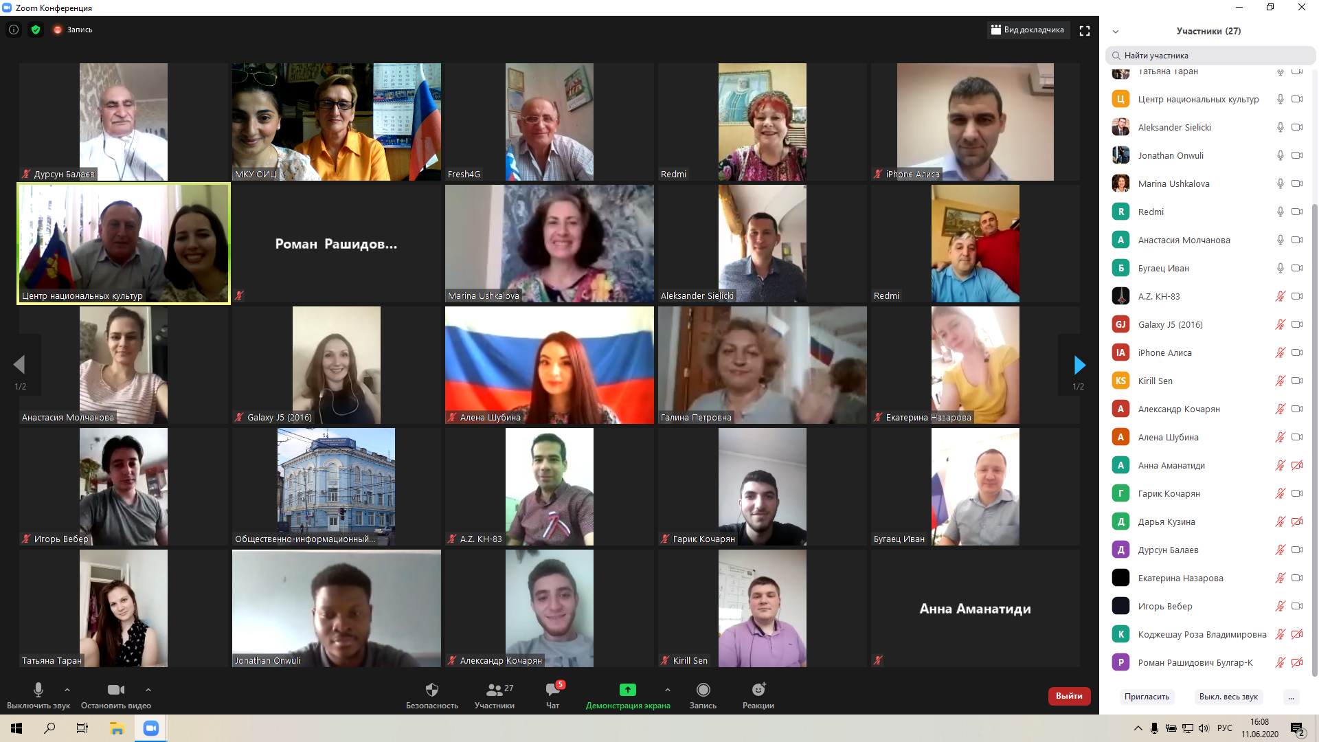17 июня 2020Россия – страна с более чем тысячелетней историей, огромной территорией, уникальным природным и духовным богатством, страна, объединяющая представителей разных народов, культур и конфессий. Сегодня каждый из нас осознает, что главная сила России – люди, которые в ней живут. Эти идеи объединили участников «круглого» стола, который при поддержке администрации муниципального образования город Краснодар и Краснодарской краевой общественной организации «Центр национальных культур», в рамках реализации подпрограммы «Гармонизация межнациональных отношений и профилактика терроризма и экстремизма» муниципальной программы муниципального образования город Краснодар «Развитие гражданского общества» состоялся 11 июня 2020 года в формате онлайн на платформе Zoom.