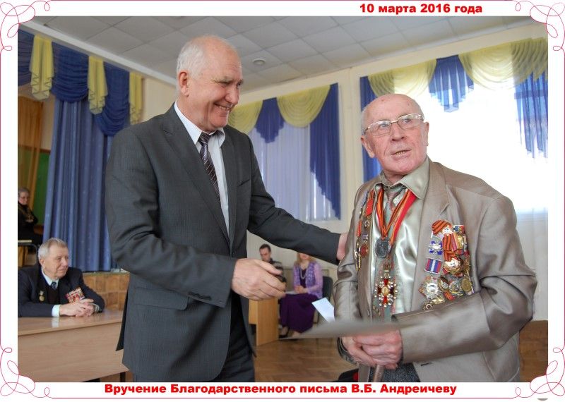 Собравшихся поздравил с праздником председатель Совета ветеранов Центрального округа города Краснодара Г.Н. Малков и вручил Благодарственные письма ветеранам, ведущим активную работу по патриотическому воспитанию подрастающего поколения.