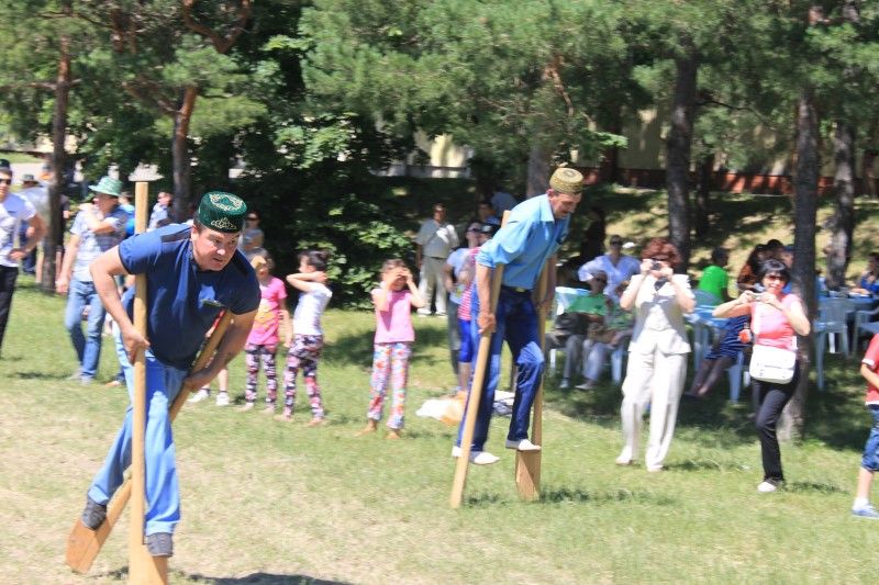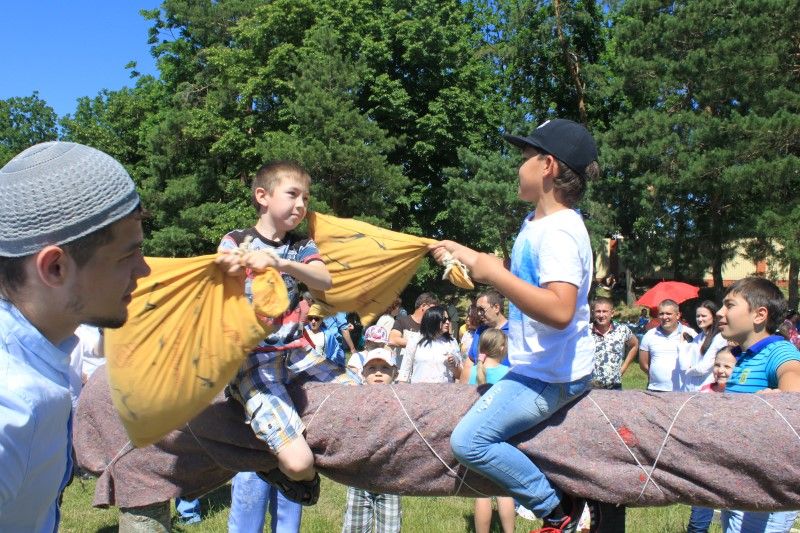 Гости Сабантуя с удовольствием и азартом приняли участие в игровой программе праздника, состоявшей из разнообразных шуточных состязаний в ловкости и выносливости, в том числе таких национальных татарских забавах как: борьба на буме (бревне) с мешками, бег с полными вёдрами на коромысле, ходьба на ходулях, бег с яйцом в ложке, бег в мешках и многих других.