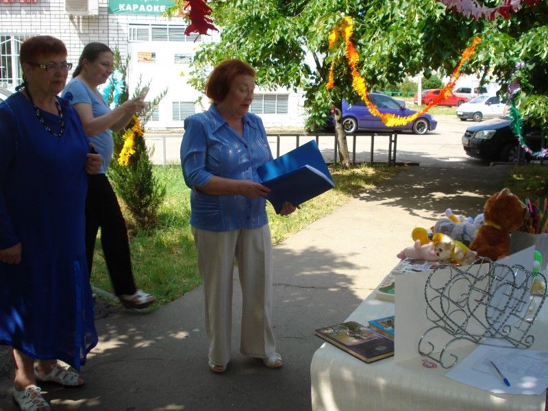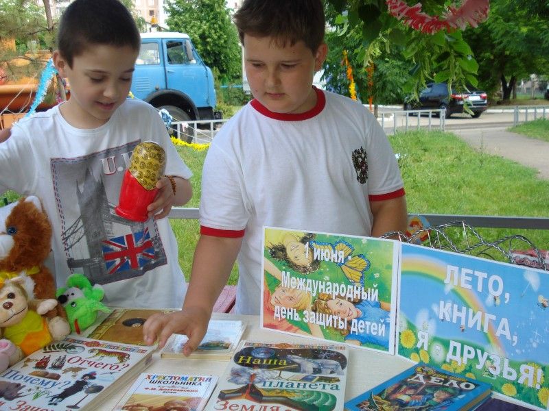 У книжной выставки «Лето, книга, я – друзья!» прошла литературная викторина по произведениям для детей мировых классиков. Ребята приняли активное участие и в весёлых конкурсах: «Цветочная поляна», « Весёлый поварёнок», «Тропинка сюрпризов», «Ищем таланты». Желающих прочесть стихи, спеть песню было очень много.
