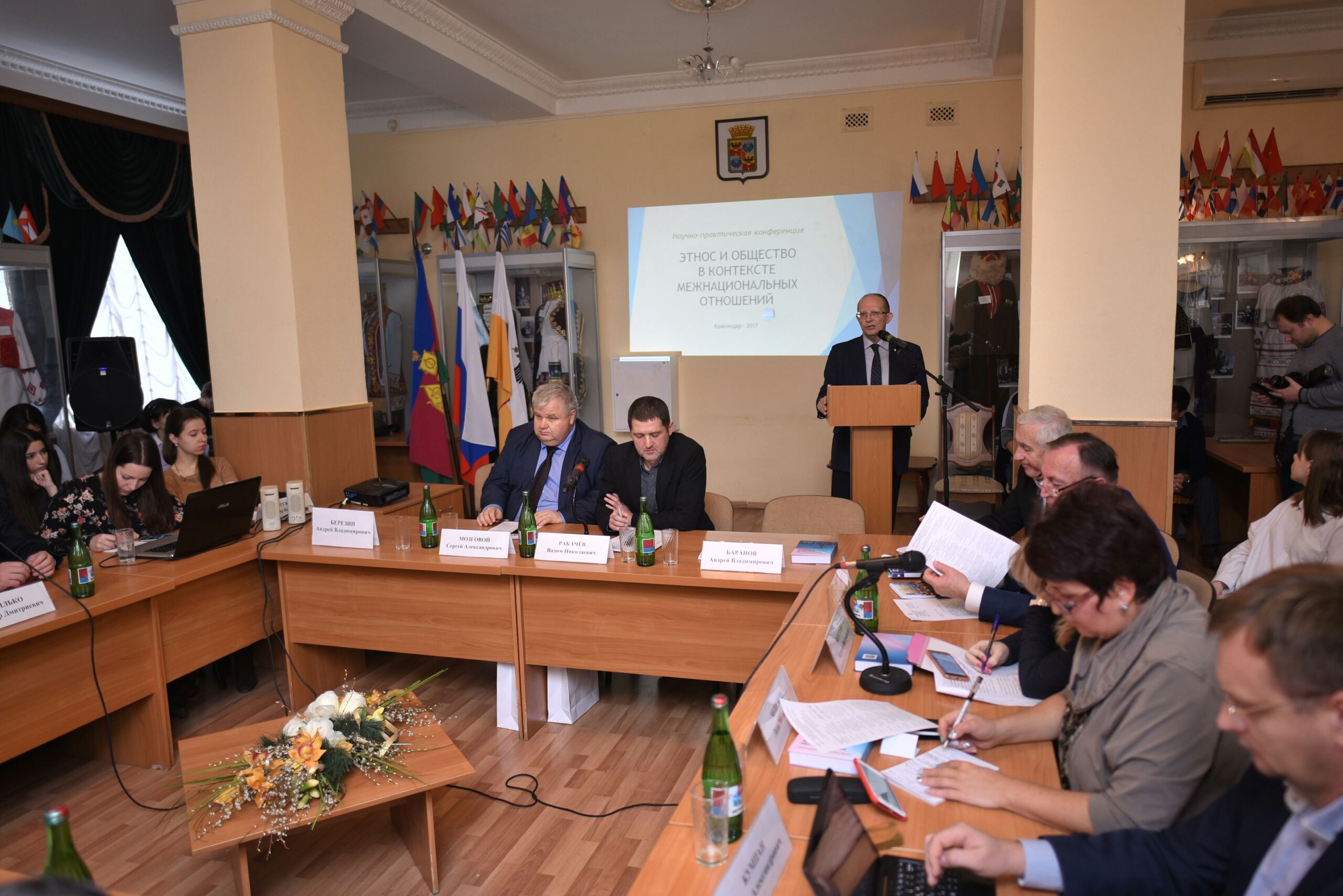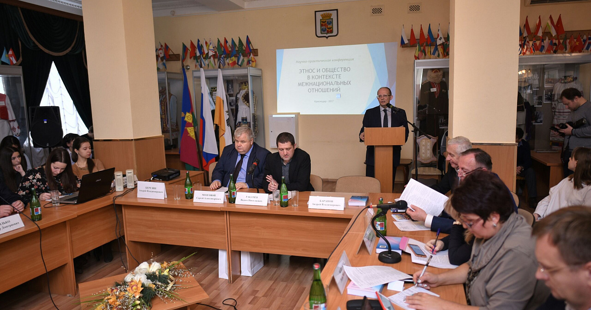 20 ноября 2017В рамках подпрограммы «Гармонизация межнациональных отношений и профилактика терроризма и экстремизма» муниципальной программы муниципального образования город Краснодар «Развитие гражданского общества» 15 ноября 2017 года в «национальной гостиной» муниципального казённого учреждения муниципального образования город Краснодар «Общественно-информационный центр города Краснодара» администрацией муниципального образования город Краснодар совместно с Кубанским государственным университетом проведена пятая научно-практическая конференция «Этнос и общество в контексте межнациональных отношений».