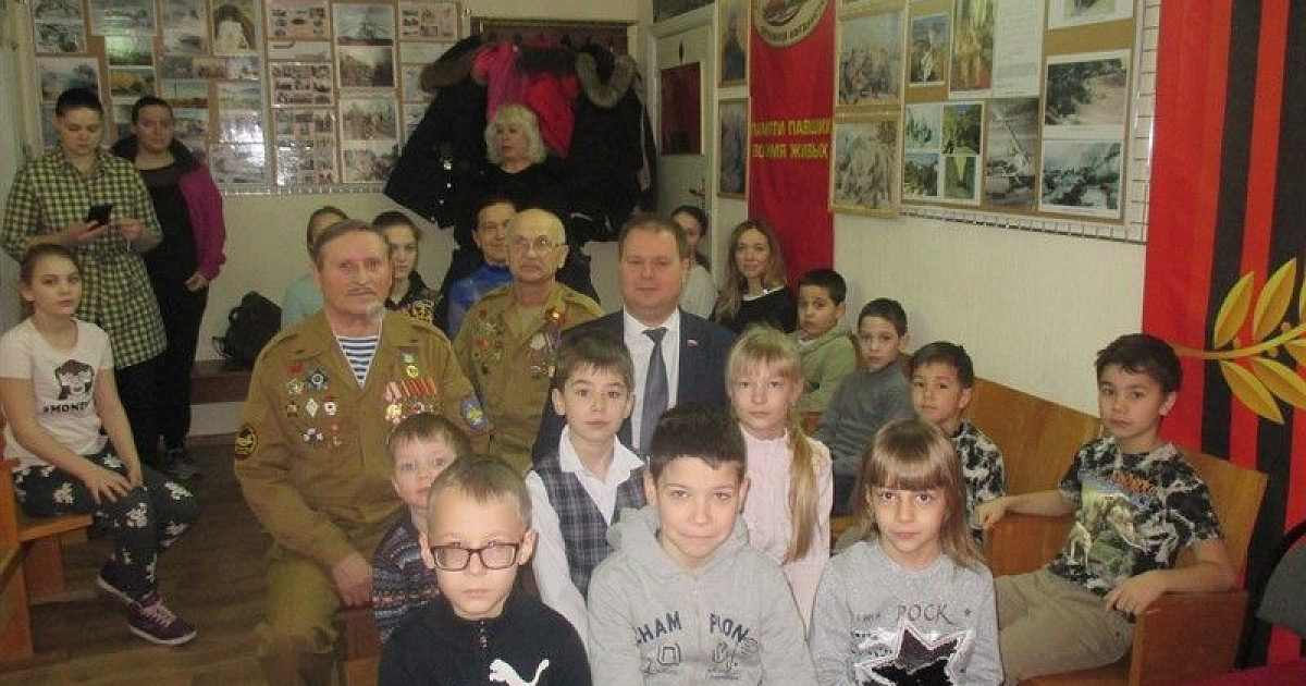 С ребятами и их родителями встретились депутат городской Думы Краснодара Коломиец Д.В. и ветераны боевых действий в Афганистане: председатель Правления отделения Золочевский П.В. и майор ВВС Н.Г. Таратынов.