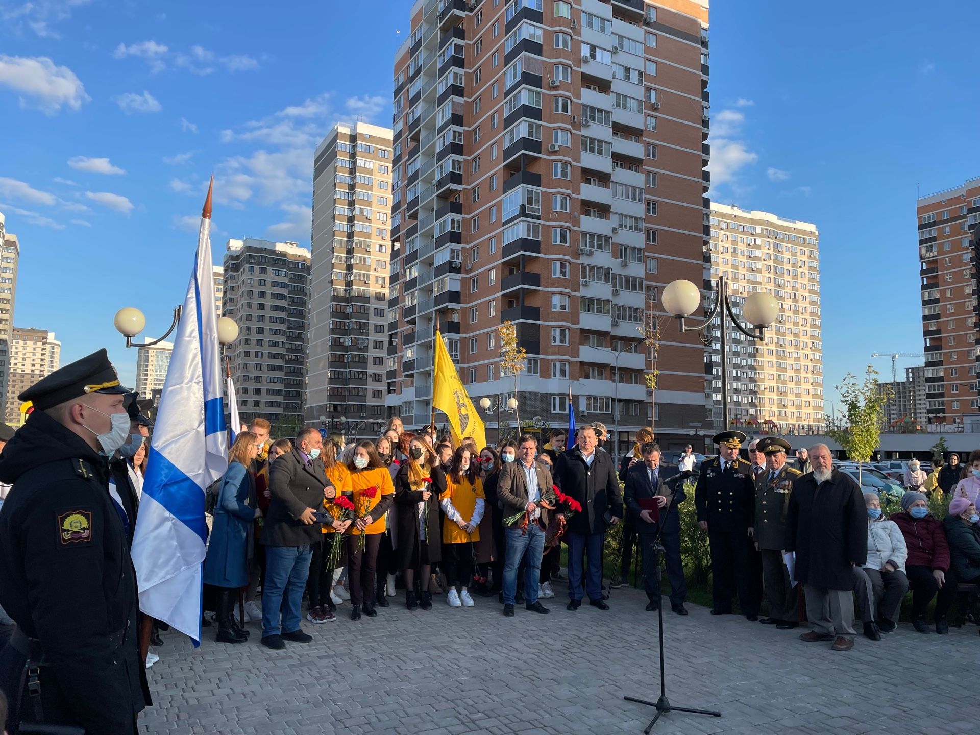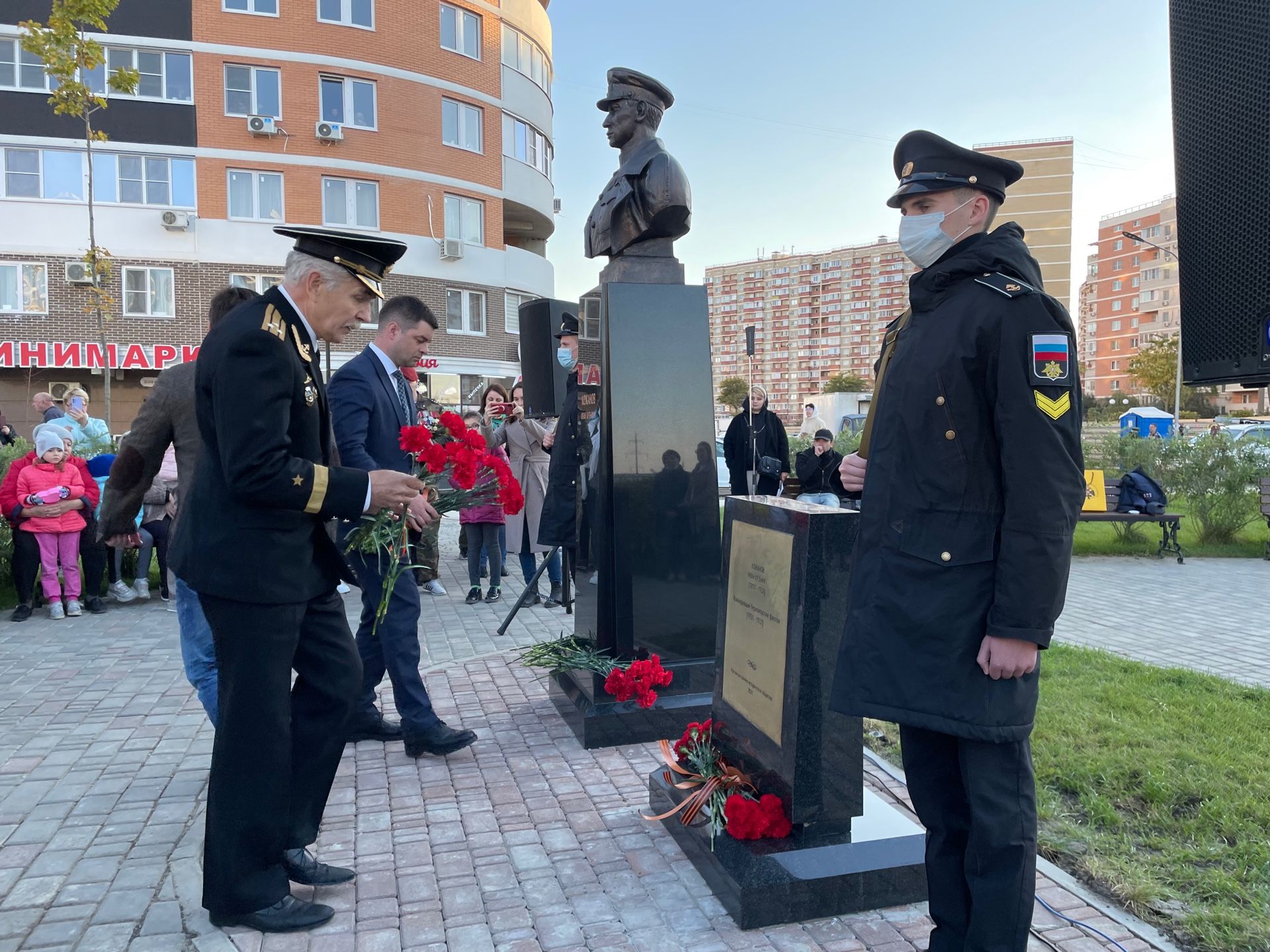 После открытия мемориала все присутствующие возложили цветы к подножию бюста.