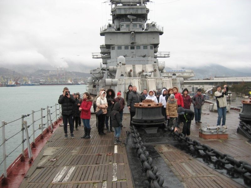 Экскурсия продолжилась на крейсере «Михаил Кутузов». Группа успела спуститься на нижнюю палубу, узнать, как несли службу и отдыхали матросы и офицеры. Экскурсовод поведал, что на корабле были в качестве гостей государственные деятели из разных стран, в том числе Президент Российской Федерации. Крейсер также служил площадкой для съемок фильма с участием Владимира Высоцкого.