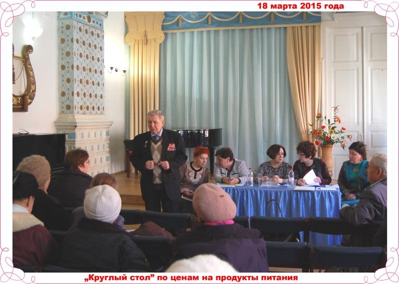 25 марта 201518 марта состоялся «круглый стол» на актуальную сегодня тему повышения цен на продукты питания. В обсуждении приняли участие руководители общественных организаций города, председатели социально-бытовых комиссий, заместитель начальника управления торговли и бытового обслуживания Колесникова Светлана Николаевна, заместитель начальника управления цен и тарифов, начальник отдела мониторинга и аналитической работы Самарская Ольга Андреевна, заместитель начальника отдела по тарифной политике управления цен и тарифов Пинчук Наталья Николаевна, Ковалёва Лолика Львовна начальник отдела по работе с общественными объединениями управления по связям с общественностью администрации муниципального образования город Краснодар. Вел заседание первый заместитель председателя Совета ветеранов г.Краснодара Любченко Э.Б., он кратко рассказал об объективных причинах роста цен на продукты питания. Самарская О.А. отметила, что реализацию на социально-значимых продуктов питания рекомендовано осуществлять с наценкой не выше 10 процентов, раздала памятку для покупателей, в которой перечислены данные13 наименований товаров. Ольга Андреевна проинформировала присутствующих о том, что каждый покупатель может сообщить о незаконном увеличении цен на социально значимые продукты в прокуратуру Краснодарского края.
