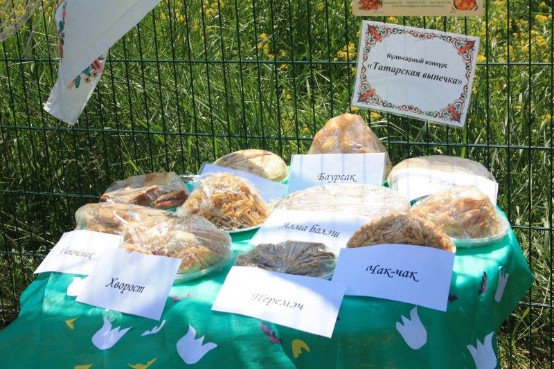 Широко представлена на празднике была и татарская национальная кухня, не оставившая равнодушным никого из гостей – это в первую очередь разнообразные мясные блюда и традиционная выпечка. Изысканным лакомством и наградой всем гостям стал вкуснейший плов, приготовленный в казане на открытом огне.