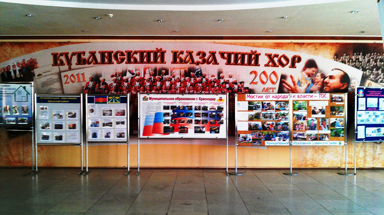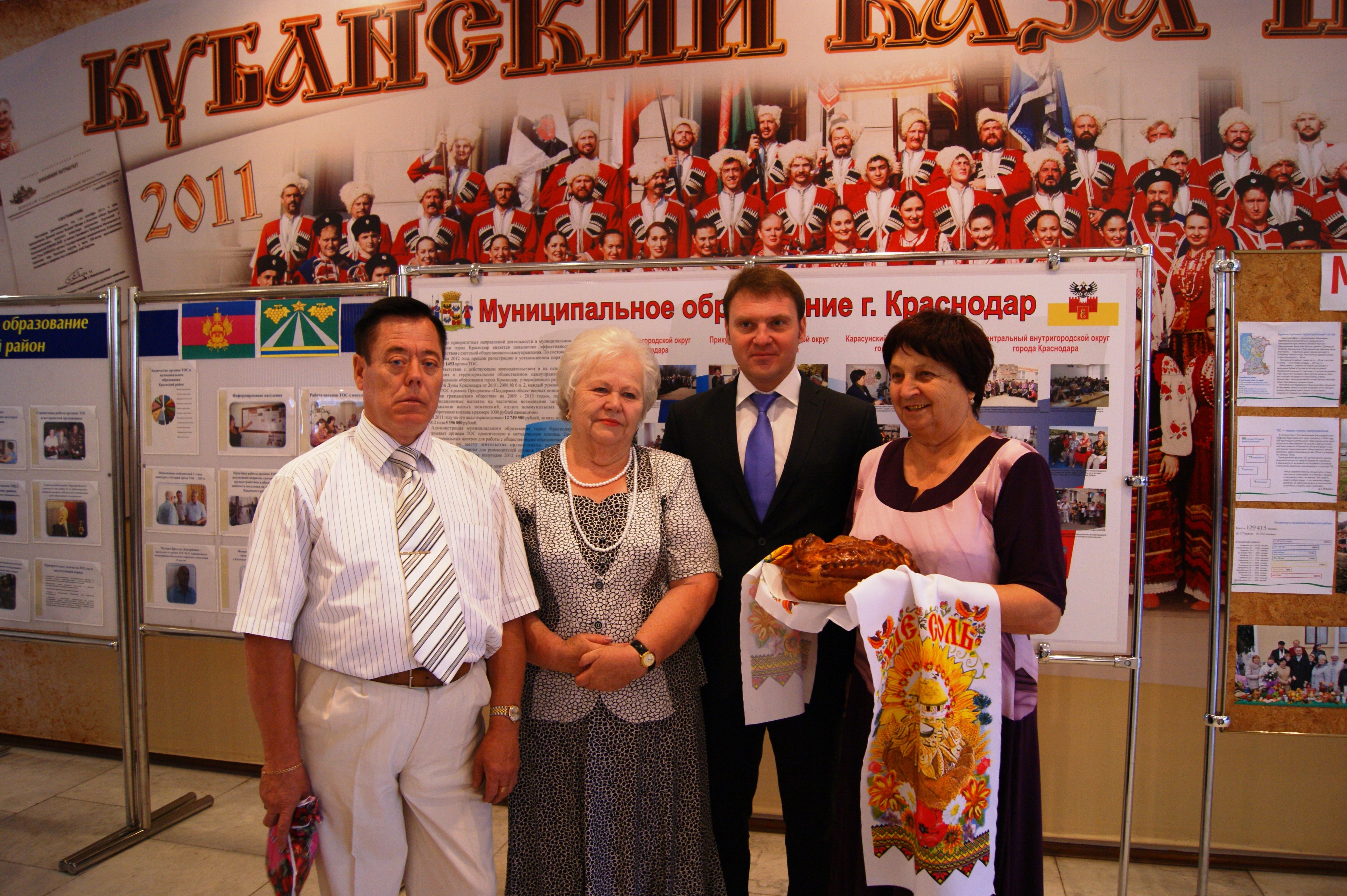 У стенда краевого центра стояли победители конкурса на лучший ТОС в 2011 году: Нина Артюх, Анатолий Селезнев и Анна Климова. В этот раз первое место присвоили ТОС № 177 Западного округа, второе - у ТОС №449 Прикубанского, третье - у ТОС № 431 Карасунского округа.