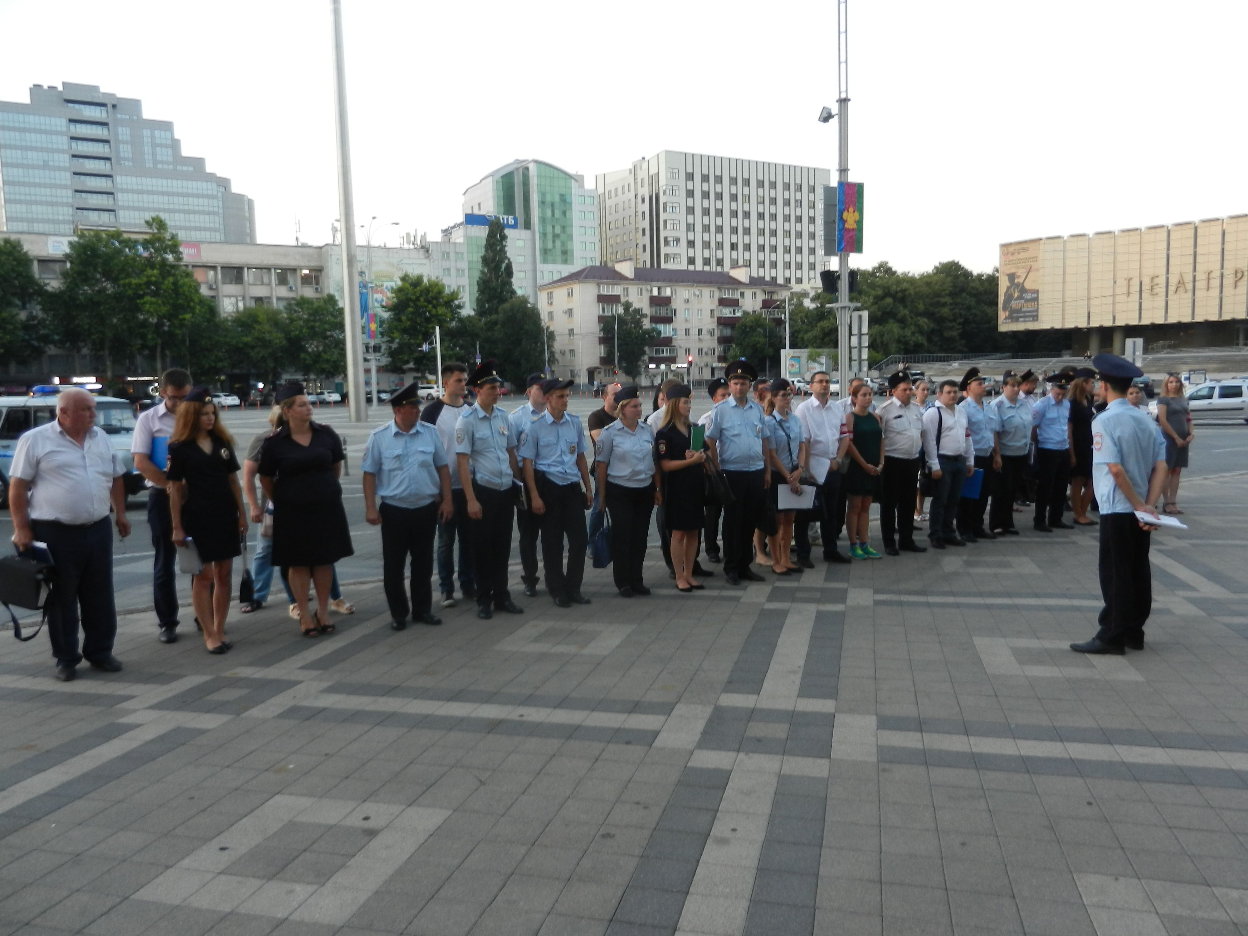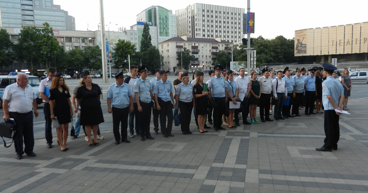 27 июня 2018 года в 20.00 на Театральной площади краевого центра проводился инструктаж и развод на мероприятия по охране общественного порядка, с оказанием содействия сотрудникам полиции в профилактике безнадзорности и правонарушений несовершеннолетних, уделив особое внимание местам проведения праздничных мероприятий выпускников образовательных учреждений.