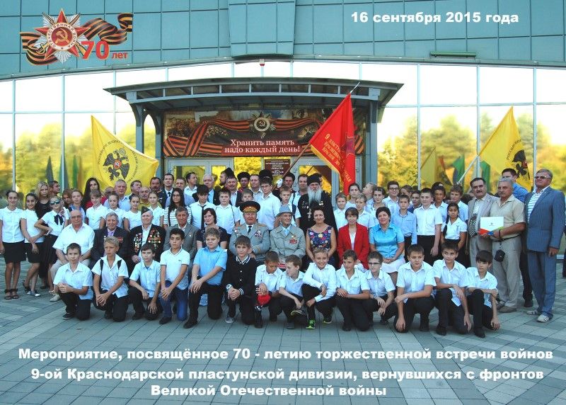 В середине сентября состоялась торжественная встреча жителей Краснодара с воинами Краснодарской пластунской дивизии. Встреча была приурочена к памятной дате – 70-летию со дня победоносного возвращения 9 Краснодарской пластунской дивизии с фронтов Великой Отечественной войны. В мероприятии приняли участие служащие Краснодарского гарнизона, казаки Екатеринодарского отдела Кубанского казачьего войска, , ветераны Великой Отечественной войны, представители ветеранских организаций Краснодара, 9-й Краснодарской (горно-стрелковой, пластунской, мотострелковой) дивизии из Республики Адыгея, «Пост №1». В Краснодарском городском выставочном зале Боевой Славы состоялась презентация фильма «9 пластунская дивизия на фронтах Великой Отечественной войны», на которой присутствовали ветераны дивизии из Майкопа, краснодарцы, проходящие службу по призыву из военной базы ЮВО, дочь генерала П.И.Метальникова, представители Краснодарского отделения Всероссийского военно-исторического общества, ветеранской общественности и учащиеся школ Краснодара. Участники возложили цветы к памятнику освободителям Краснодара.