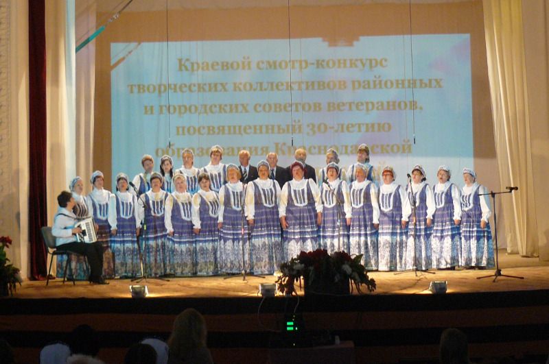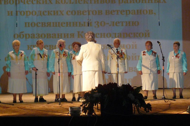 Четырнадцать творческих коллективов Краснодарского края собрались на сцене Дома культуры. Прежде всего, это активисты ветеранского движения, с присущим ими оптимизмом, активной жизненной традицией и любовью к песенному творчеству.