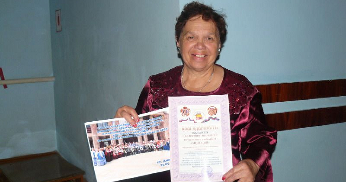 В прошлом году на первом этапе смотра-конкурса «Старшее поколение», который проходил в городе Краснодаре ансамбль «Мелодия» завоевал победу. Когда звучат их песни, закроешь глаза и слышишь молодые, сильные голоса. И понимаешь, что пение – одна из самых больших человеческих радостей.