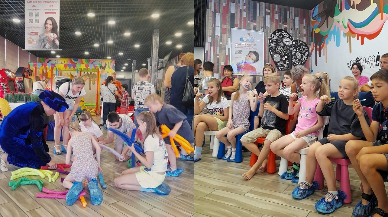 Познавательная часть сопровождалась мультфильмами, играми, интерес поддерживал веселый аниматор. Клиника имеет отдельную игровую зону, которая делает пребывание в клинике интересным и незабываемым, способствует эмоциональной разгрузке.