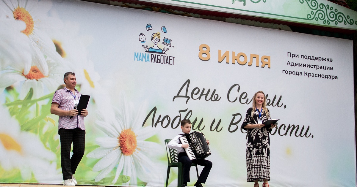 В минувшие выходные в Городском саду Краснодара состоялся третий, уже ставший традиционным, семейный фестиваль. Организатором праздника выступает сообщество «Мама работает». Ежегодно мероприятие приурочено ко Дню семьи, любви и верности и проводится при поддержке городской администрации.