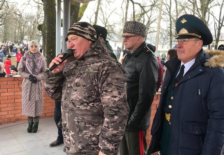 В завершении торжественного построения подполковник Андрей Сахаров, член общественной организации «Боевое Братство», для собравшихся исполнил ряд военно-патриотических песен.