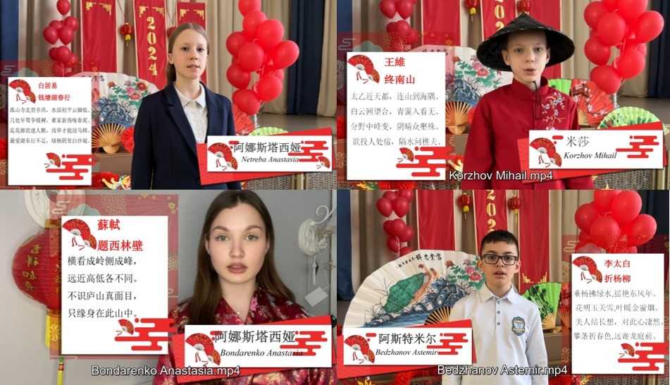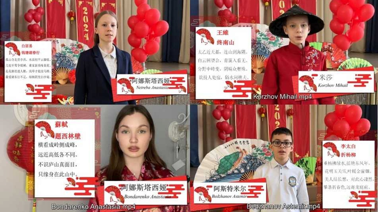 Каждый конкурсант предоставил видео выразительного чтения стихотворения на изучаемом языке. Учащиеся гимназии Краснодара выучили и продекламировали произведения китайских поэтов на китайском языке, а ребята из китайской школы подготовили поэтические произведения русских авторов на русском языке.