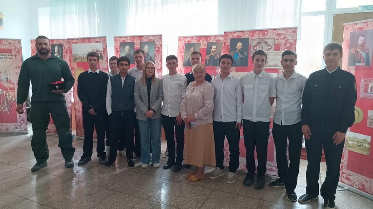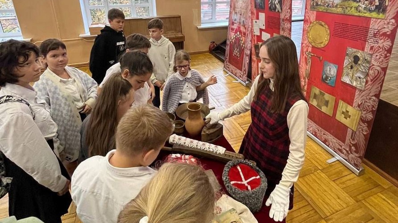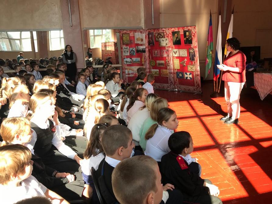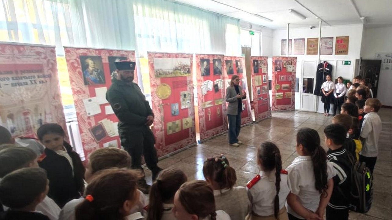 Научные сотрудники музея провели экскурсии по передвижной выставке «Регалии и реликвии Кубанского казачьего войска», рассказали ребятам о культурных и бытовых особенностях кубанских казаков.