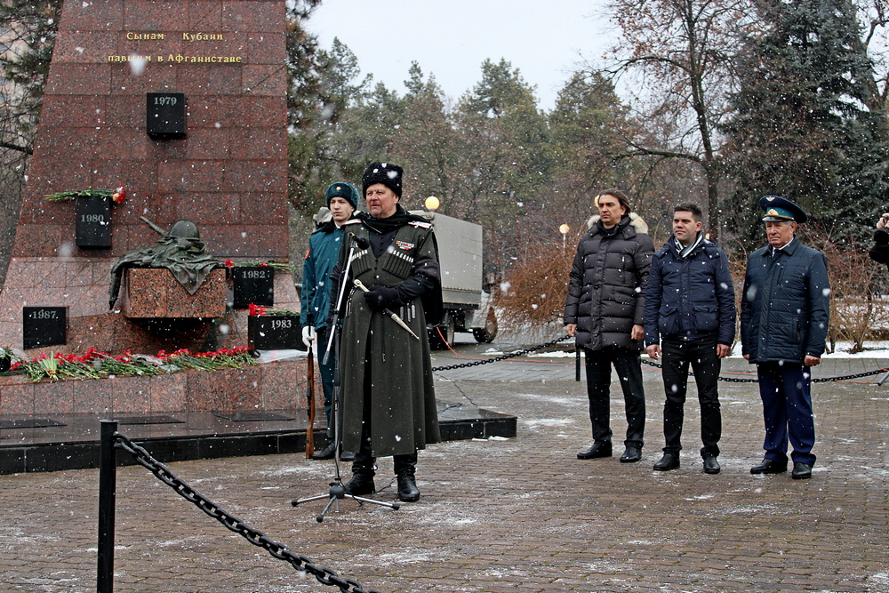 После митинга все участники возложили венки и цветы к мемориалу «Сынам Кубани, павшим в Афганистане». Память погибших почтили минутой молчания.