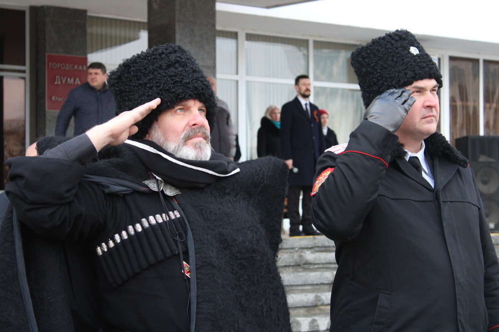 Казаки краевой столицы во главе с атаманом Екатеринодарского отдела есаулом Вадимом Черновым и атаманом Екатеринодарского районного казачьего общества войсковым старшиной Василием Павлик приняли участие в торжественной церемонии поднятия государственного флага России, которая прошла на Главной городской площади. Также в ней приняли участие глава Краснодара Андрей Алексеенко, председатель городской Думы Вера Галушко, депутаты Гордумы,