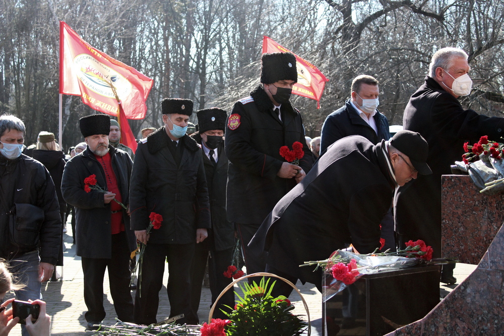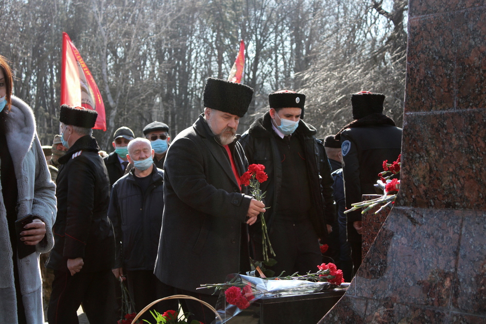 После митинга все участники возложили венки и цветы к мемориалу «Сынам Кубани, павшим в Афганистане». Память погибших почтили минутой молчания.